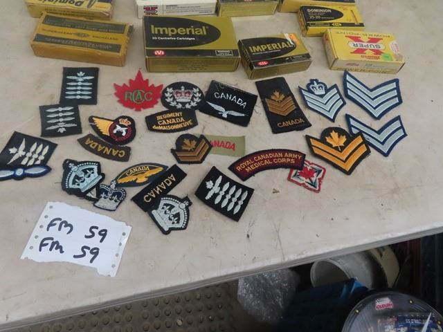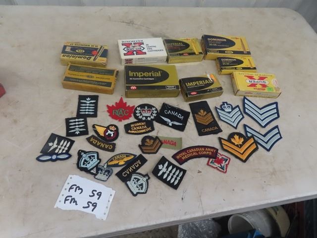 MIlitary Patches & Empty Ammo Boxes, NO SHELS- JUST BOXES