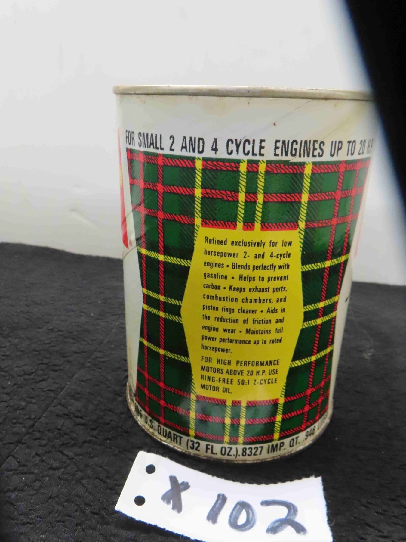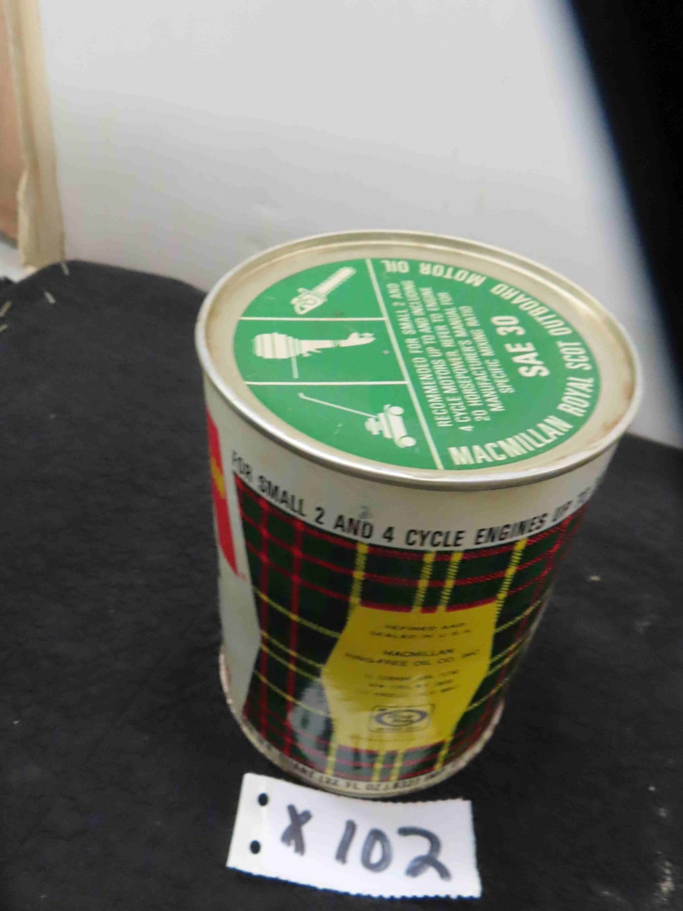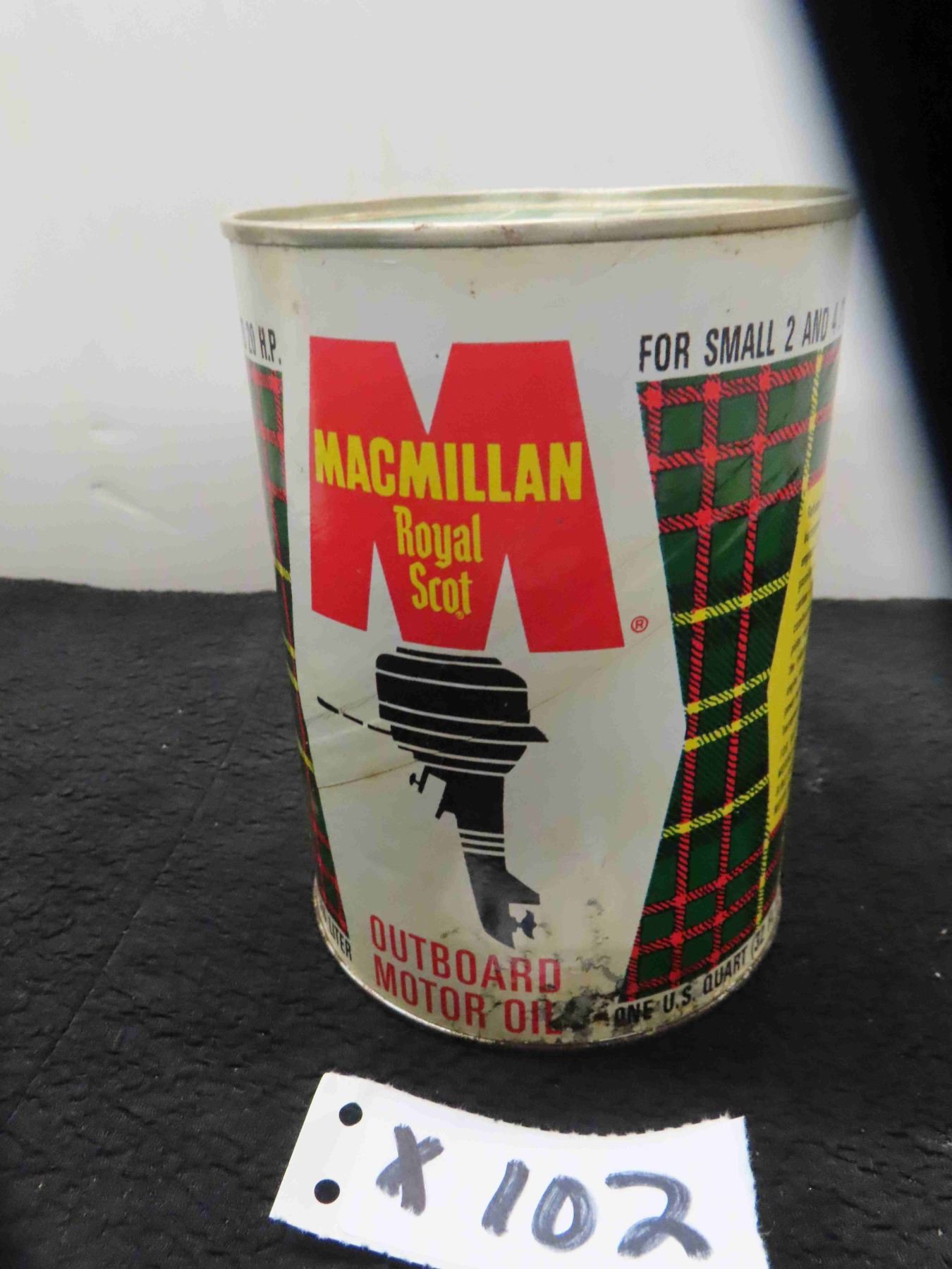 MacMillan Royal Scot Outboard Motor Oil Quartz Tin + Cardboard Can with Product