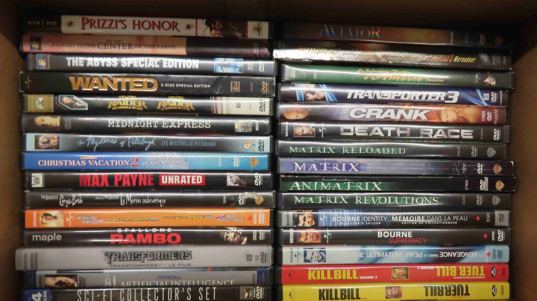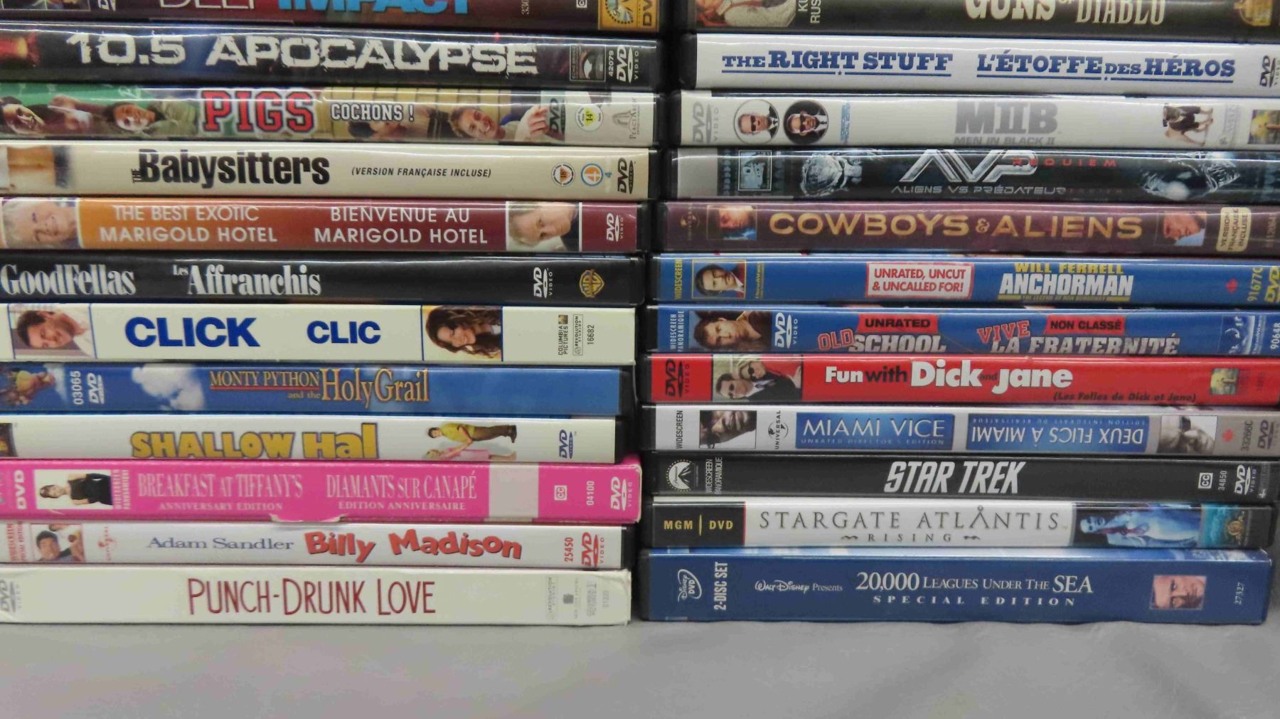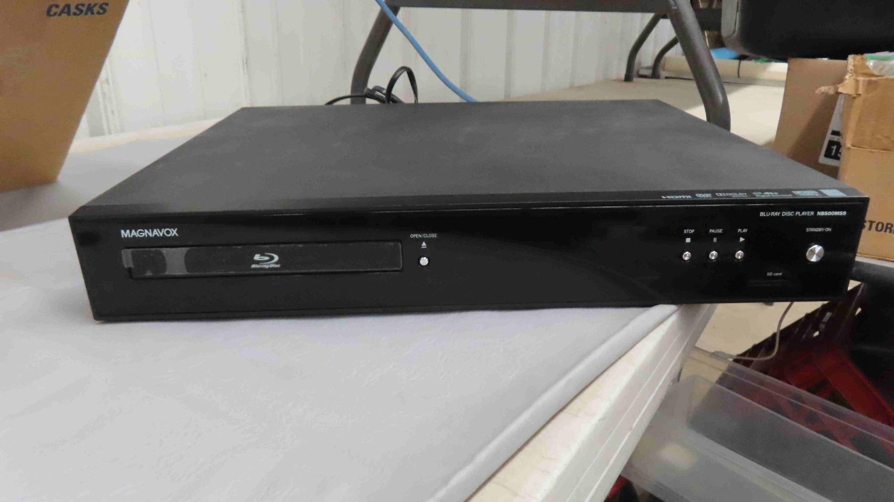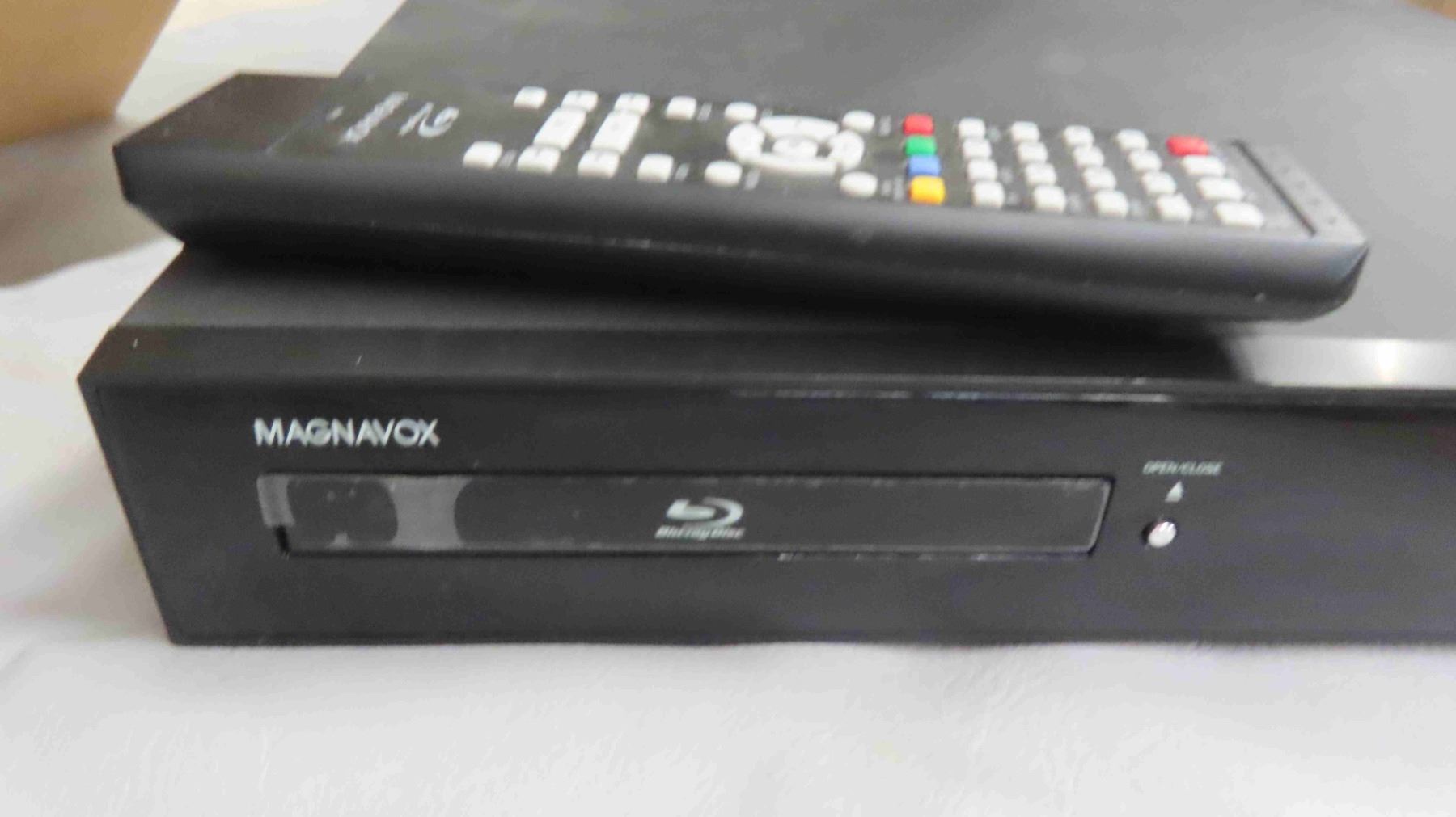 Magna Vox Blue Ray Player + 60 DVDs ; Matrix, Deep Impact, Shallow Hall, plus more