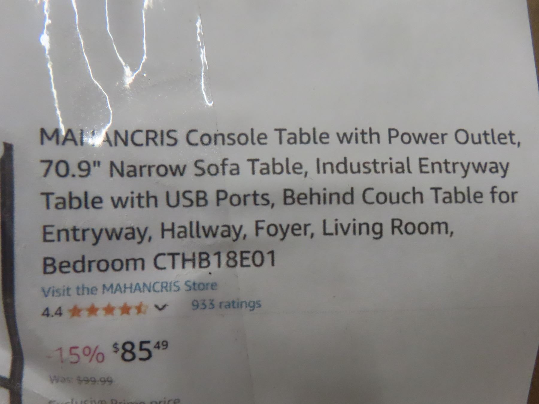 Mahancris Console Table with Power Outlet, Narrow Sofa Table, Industrial Entryway Table with USB Ports, Behind Couch Table for Entryway,Hallway,Foyer,Living Room Bedroom CTHB18E01