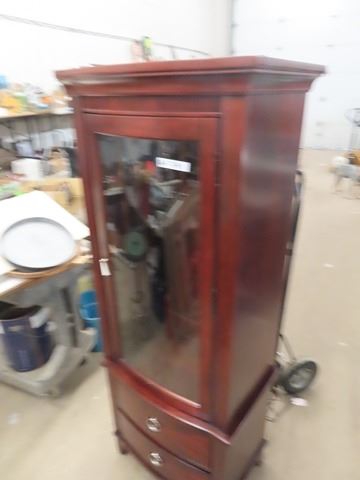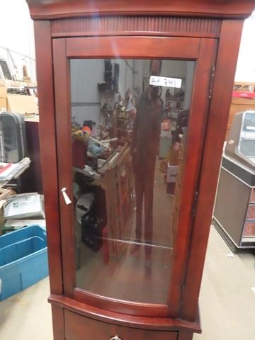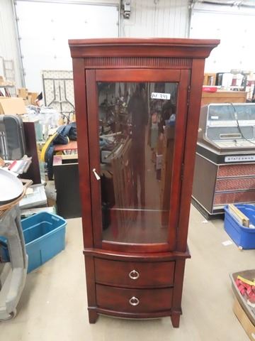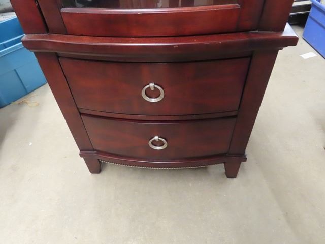 Mahogany China Cabinet- Lights Up w Glass Shelves w Curved Glass 68" x 24" X 15"