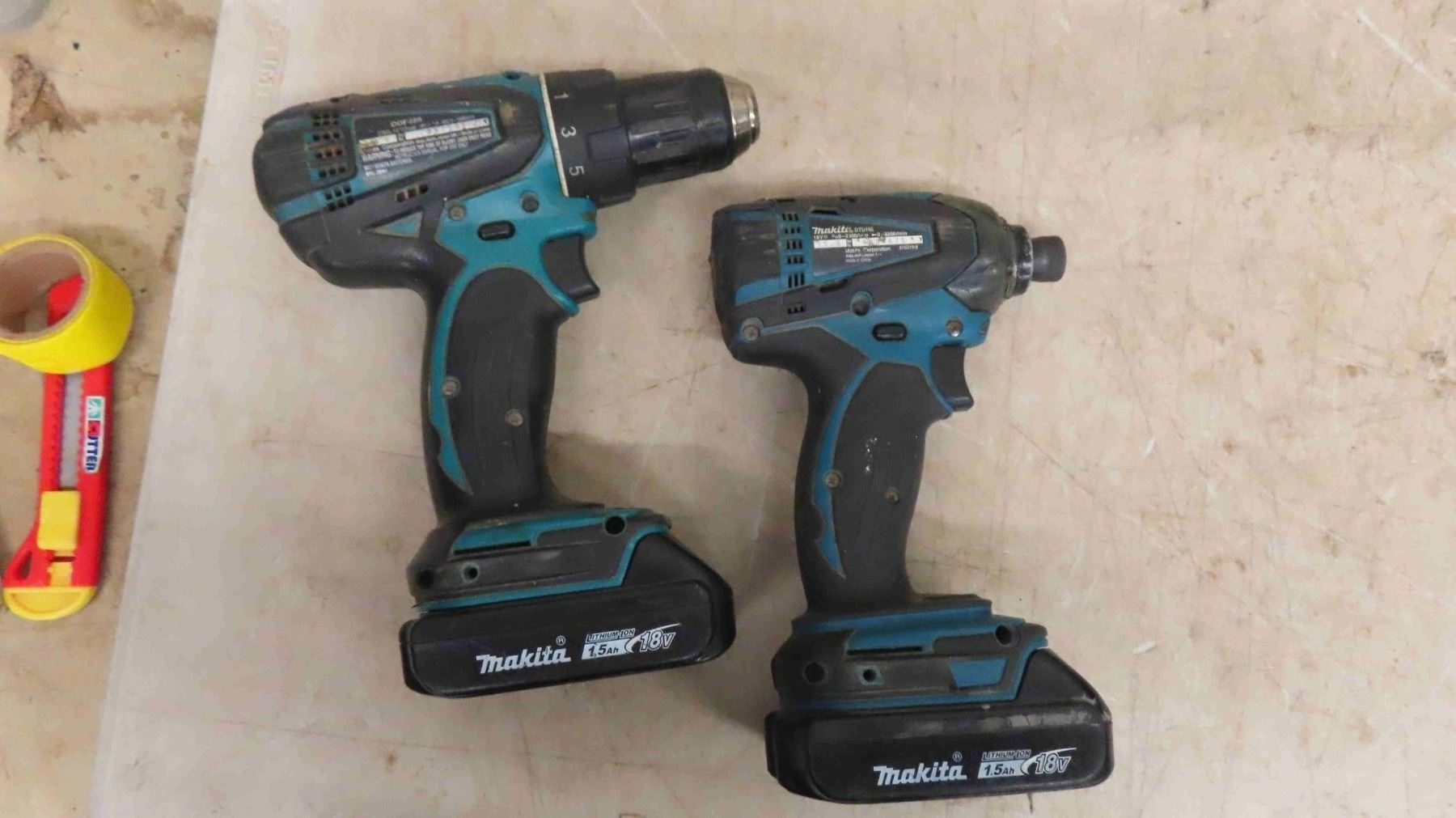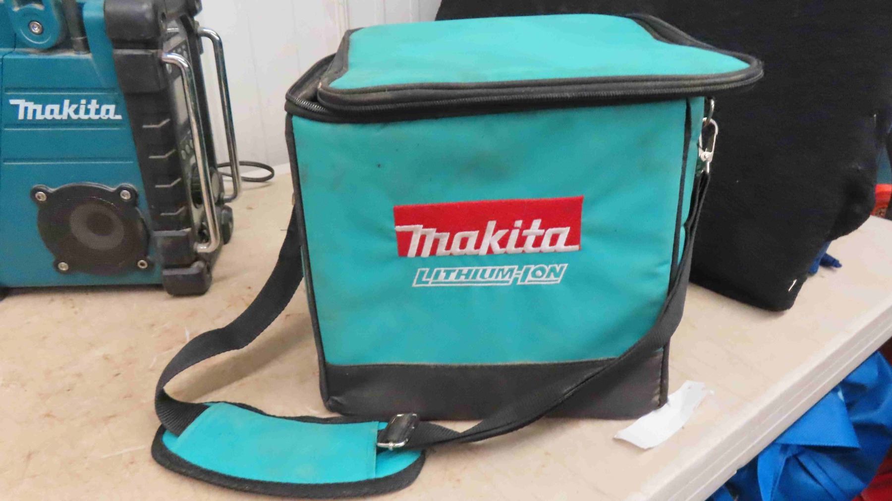 Makita Cordless 18V Items; Drill, Impact, Flashlight, 2 Chargers, 4 Batteries, Radio, Bag - Tested, Works