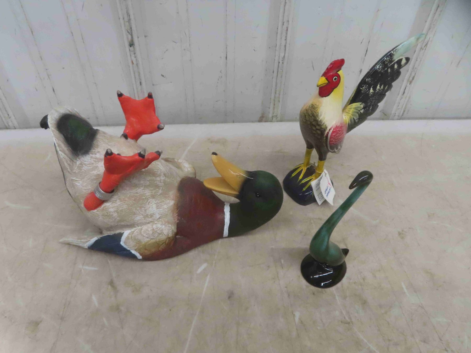 Mallard Duck Wine Holder, Blue Mountain Swan, Hand Carved and Painted Chicken 8 1/4'' Tall