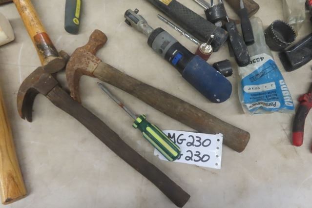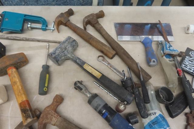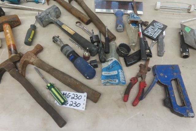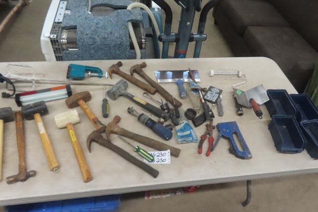 Mallets, Hammers, Trowel, Bins, Hole Saws, Screwdrivers, Stapler
