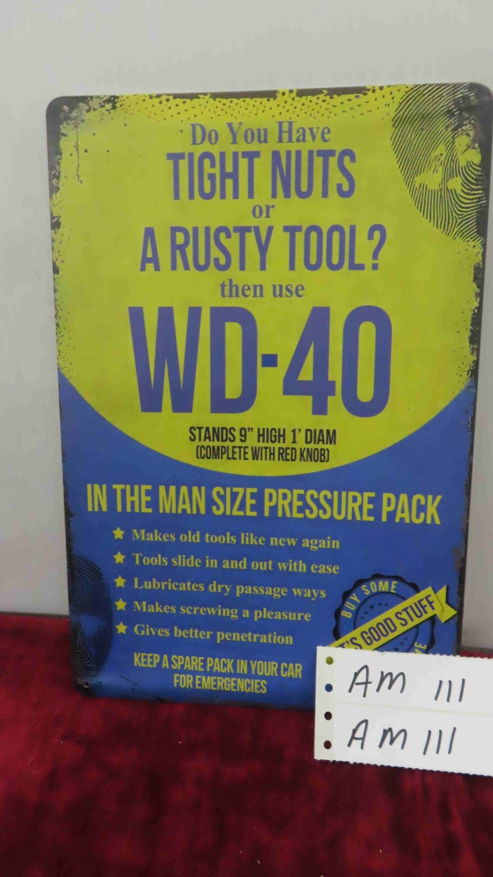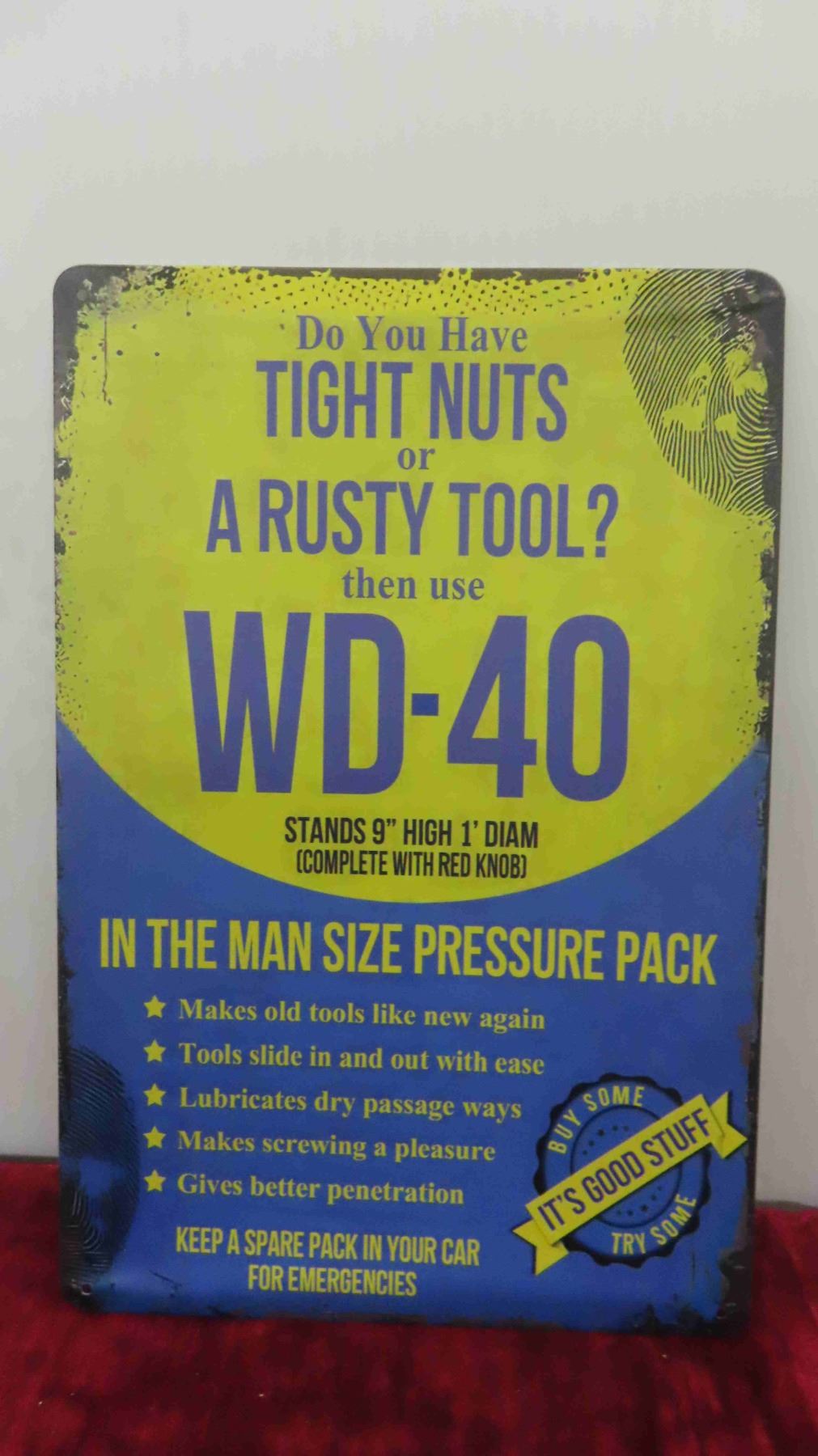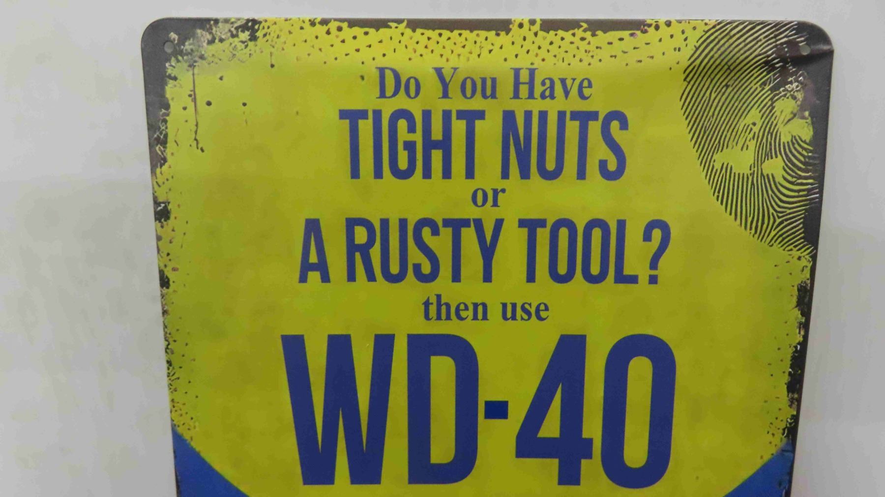 Man Cave Metal Sign ; Tight Nuts, Rusty Tool use WD 40