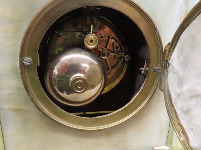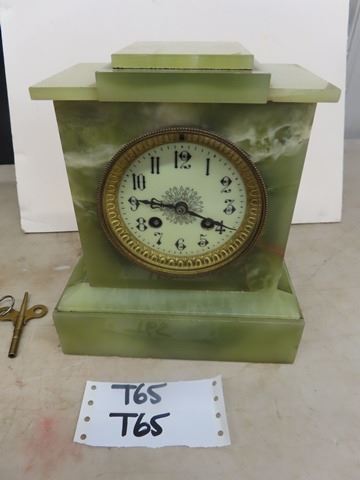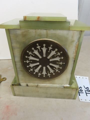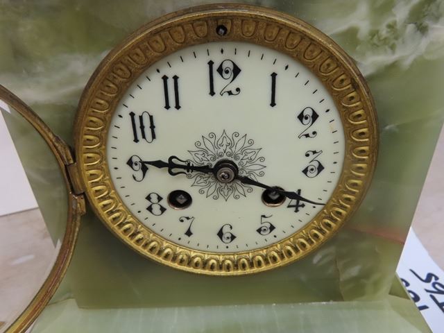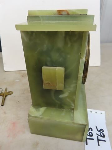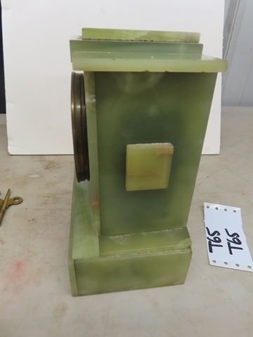 Mantle Clock Green Onyx. Beautiful face, easy to read. It measures 9” tall and 8” wide. The chimes are beautiful! The It used to work before put in storage