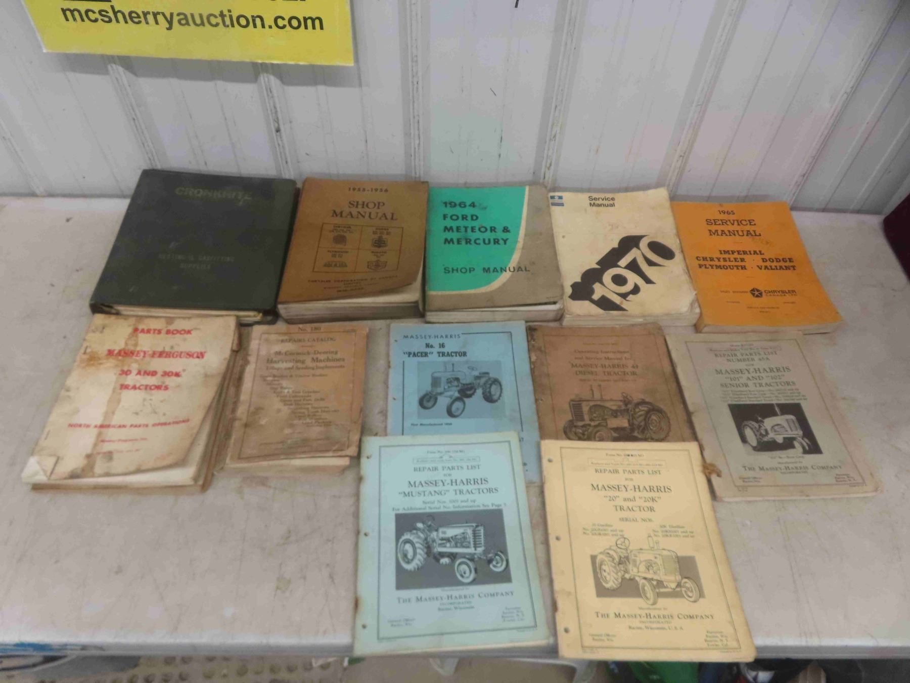 Manuals: Massey Harris, McCormick Deering, Massey Ferguson Tractors, Chrysler, 1964 Ford & Others