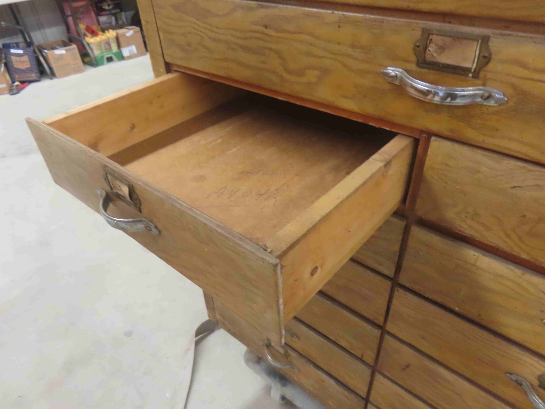 Map Cabinet Originally from a Municipality Office 24 Drawers 42'' x 50'' x 25 1/2''