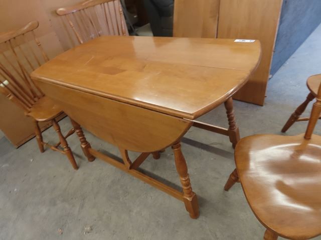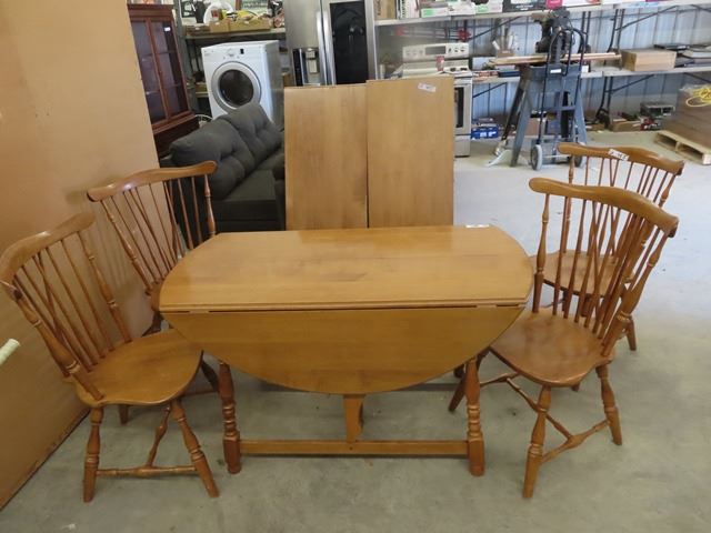 Maple Dropleaf Table w 2 Leaves & 4 Chairs 50" x 50" RD, Plus 2 Leaves 18" x 2" = Total 50" x 80"