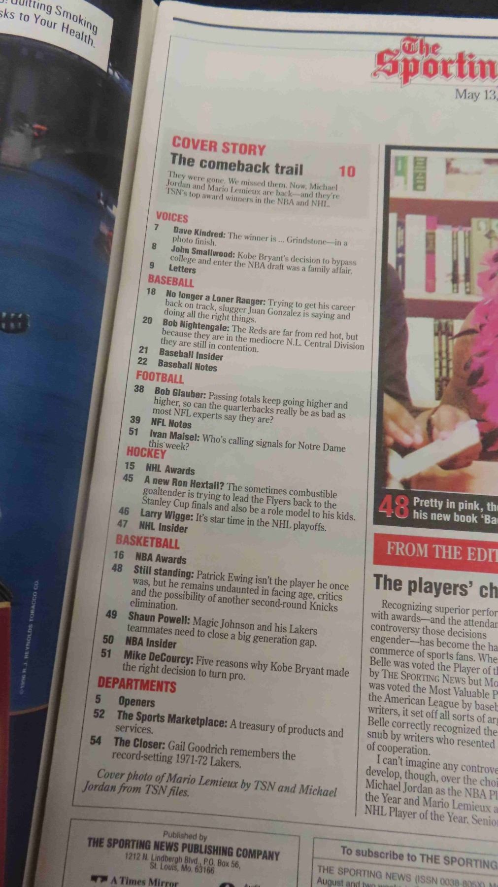 Mario Lemieux + Michael Jordan 1996 The Sporting News