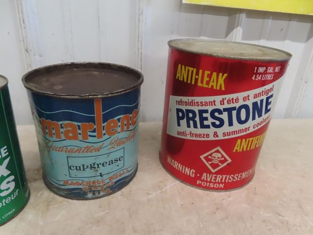 Marlene 5lb Grease, 3 Quart Tins; Esso, Petro, Motomaster & Full Prestone 1 Gal Antifreeze