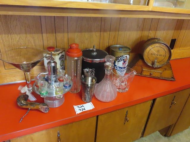Martini Set, Retro Liquor Dispenser, 2 Ice Buckets, Bar Set, Wooden Keg Display & Mexico Barrel
