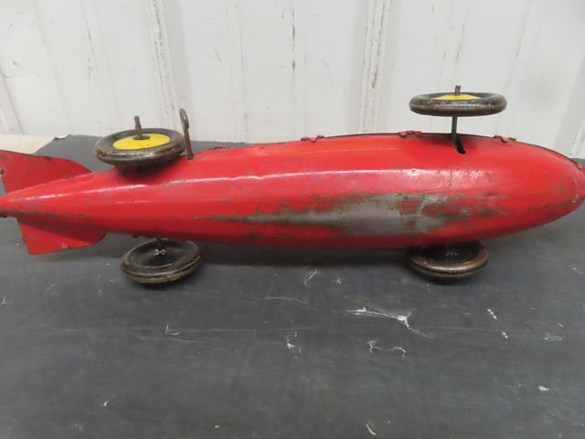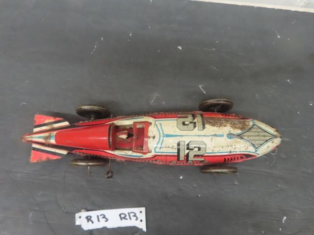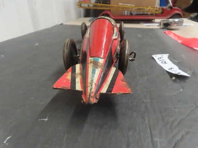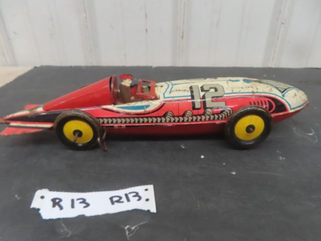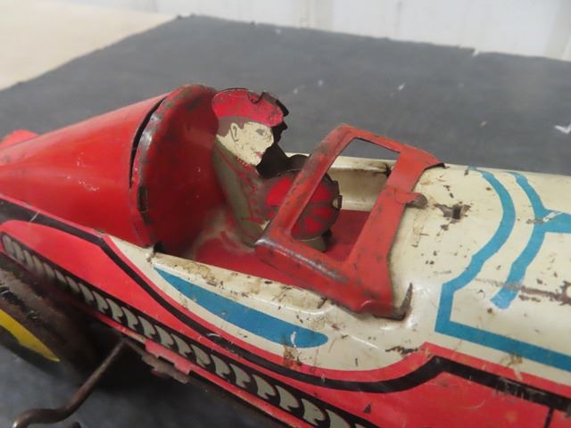 Marx Streamlined Tin Windup Racecar with Driver 3.5  x 5  x 16