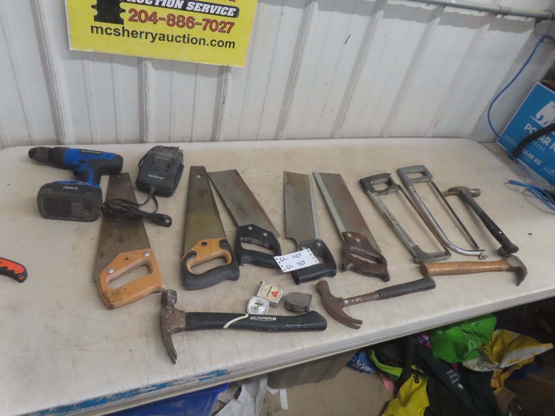 Mastercraft 18V Drill, Hand Saw, Hack Saw, Hammer, Tape Measure