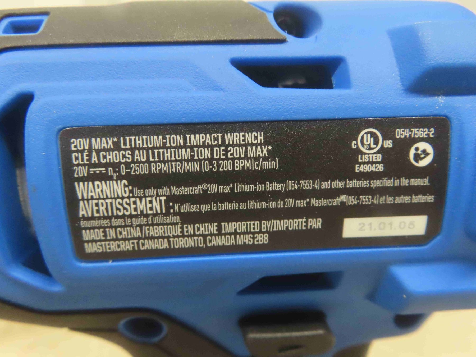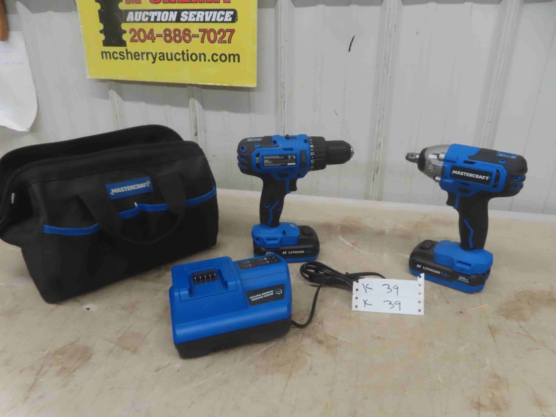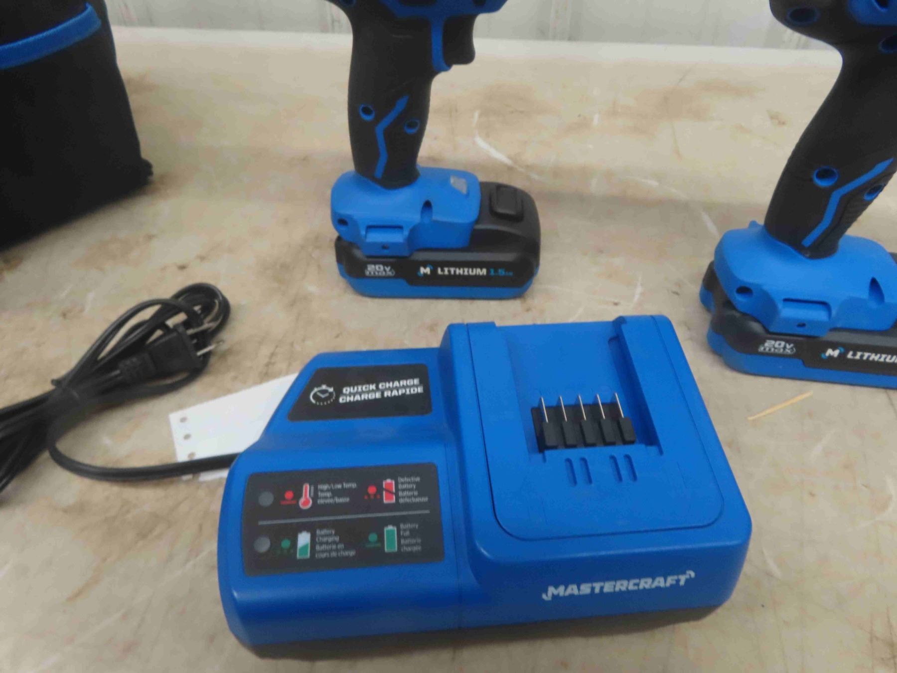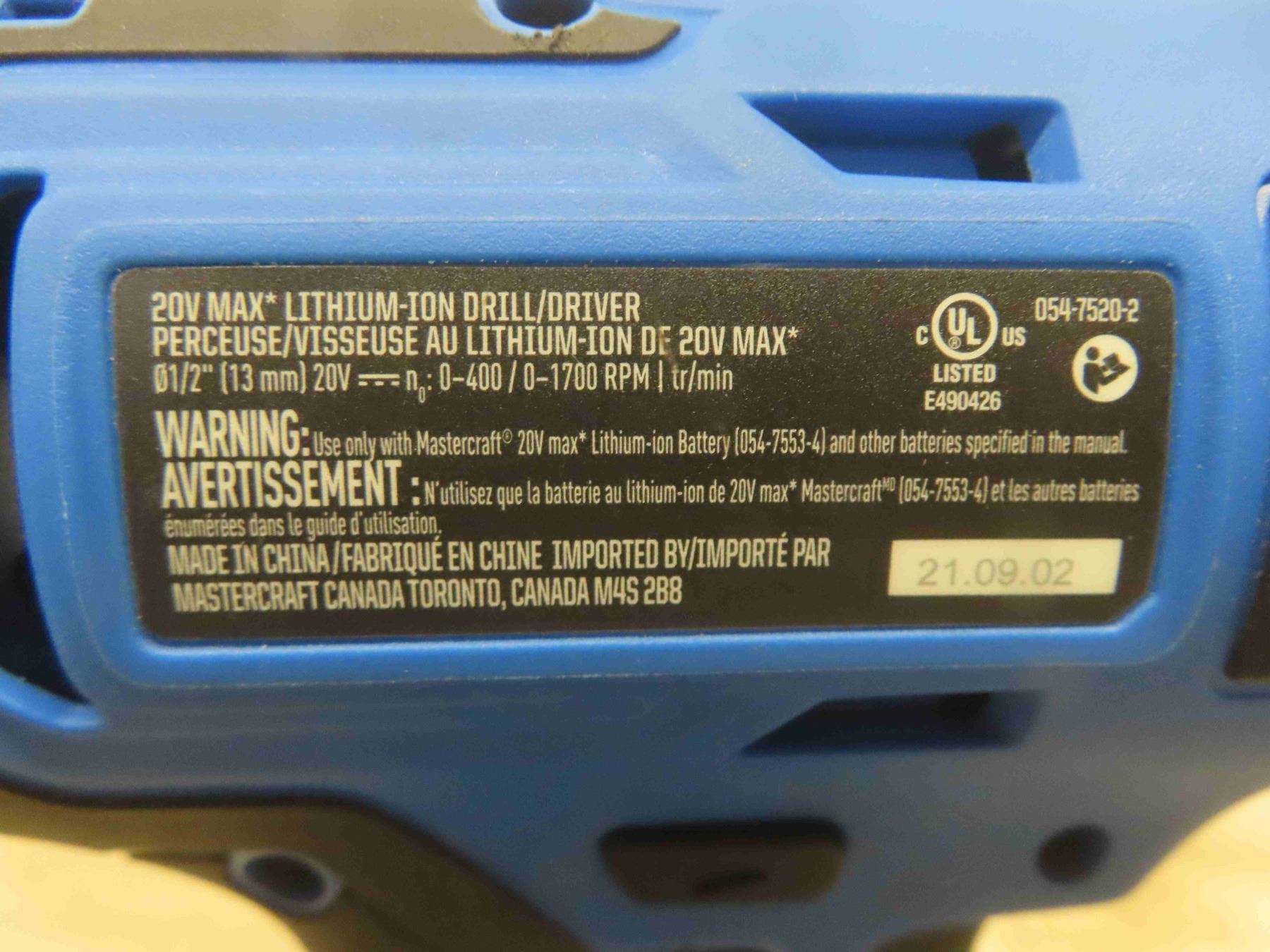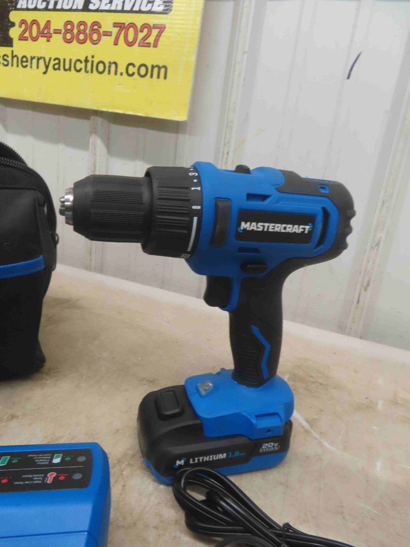 Mastercraft 20V 1/2 Impact, 20V Drill with 2 Batteries, Charger, Soft Case - Tested, works