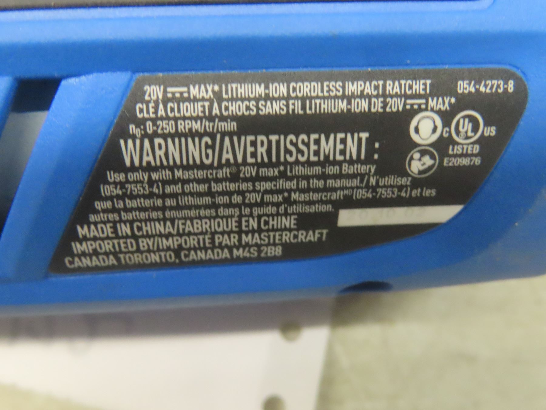 Mastercraft 20v Cordless Impact Ratchet, No Charger, No Battery