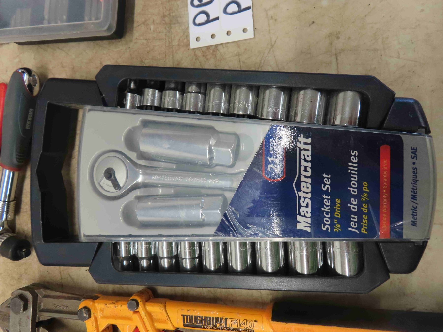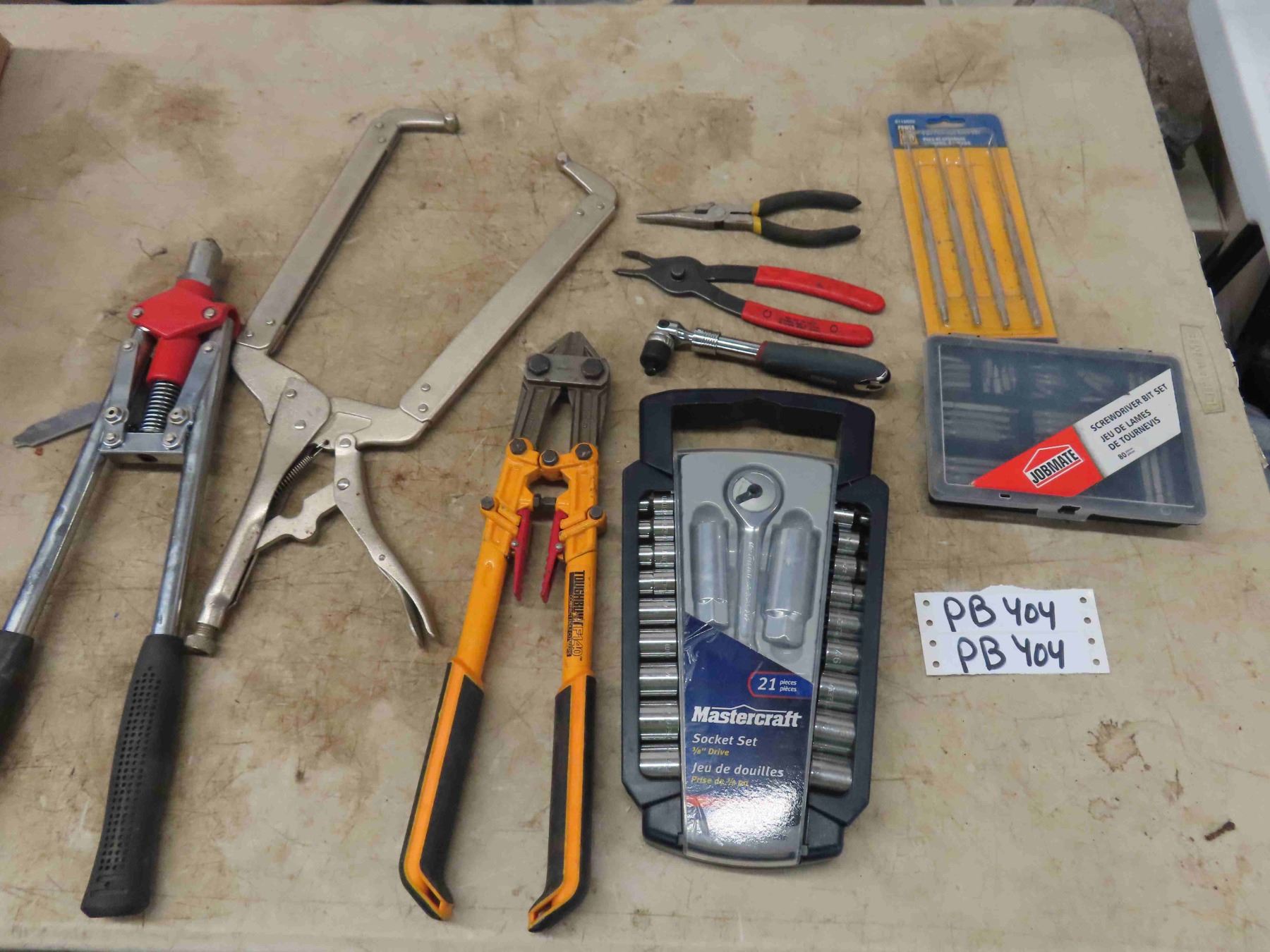 Mastercraft 3/8" Socket Set, Jobmate, Bits, Large Vice Clamp, Riveter, Bolt Cutters, Pick Set, Pliers