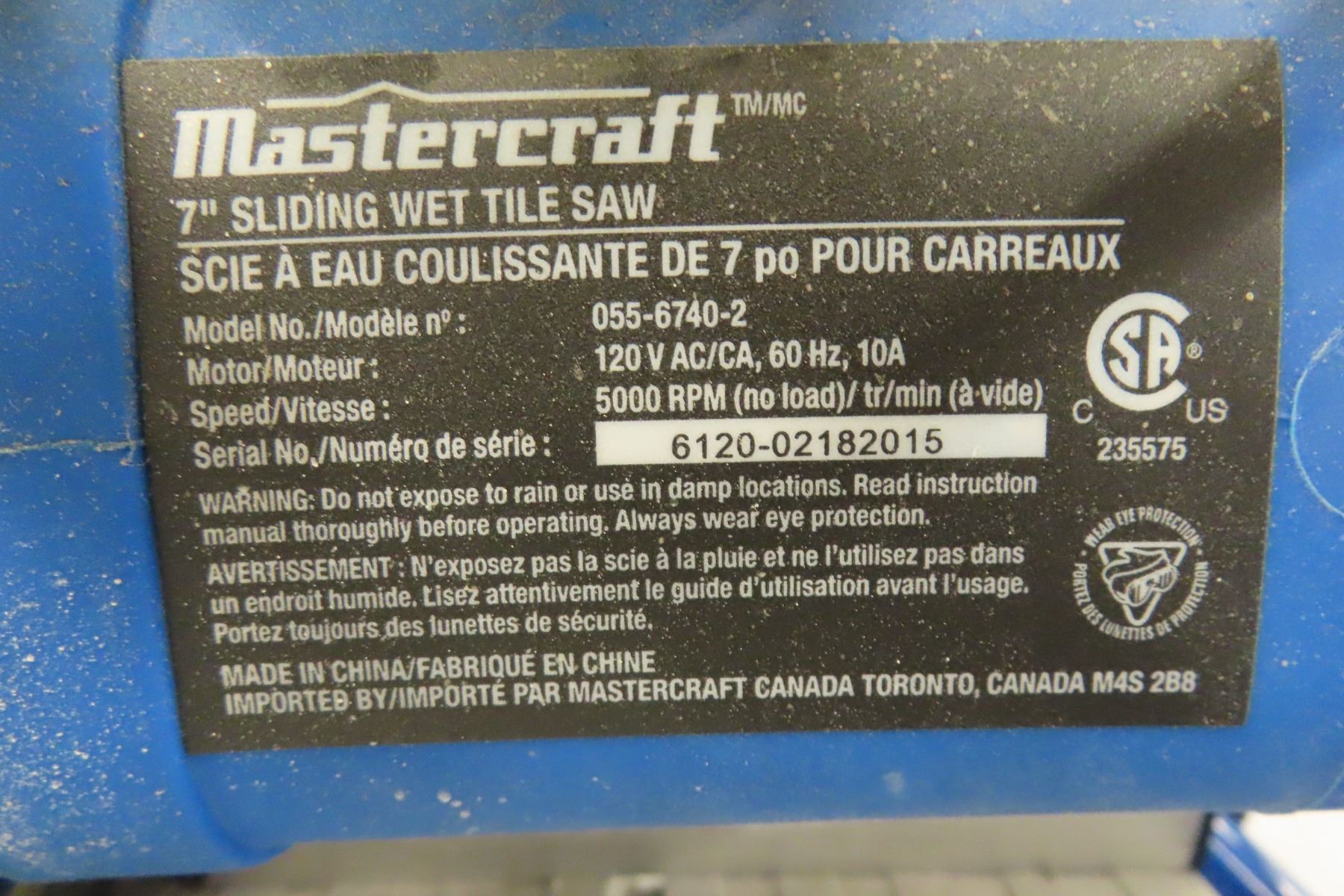 Mastercraft 7" Sliding Wet Tile Saw