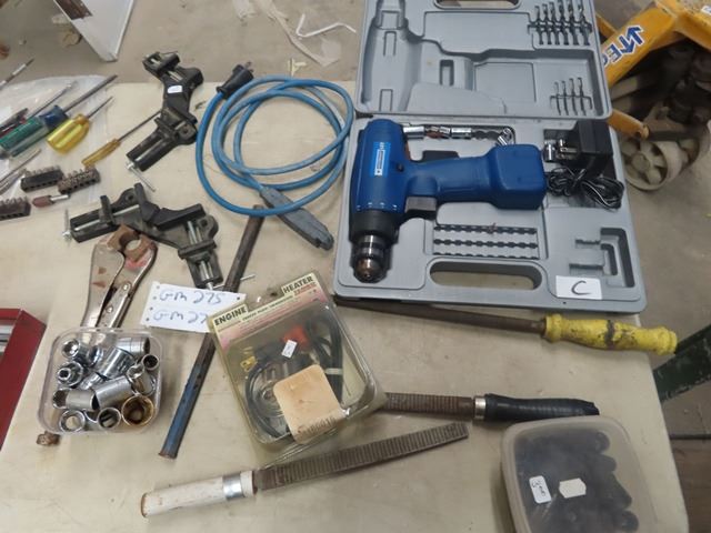 Mastercraft 8V Drill, Sockets, Wrenches, Odd & Ends Tools, Clamps, &  New Engine Heater