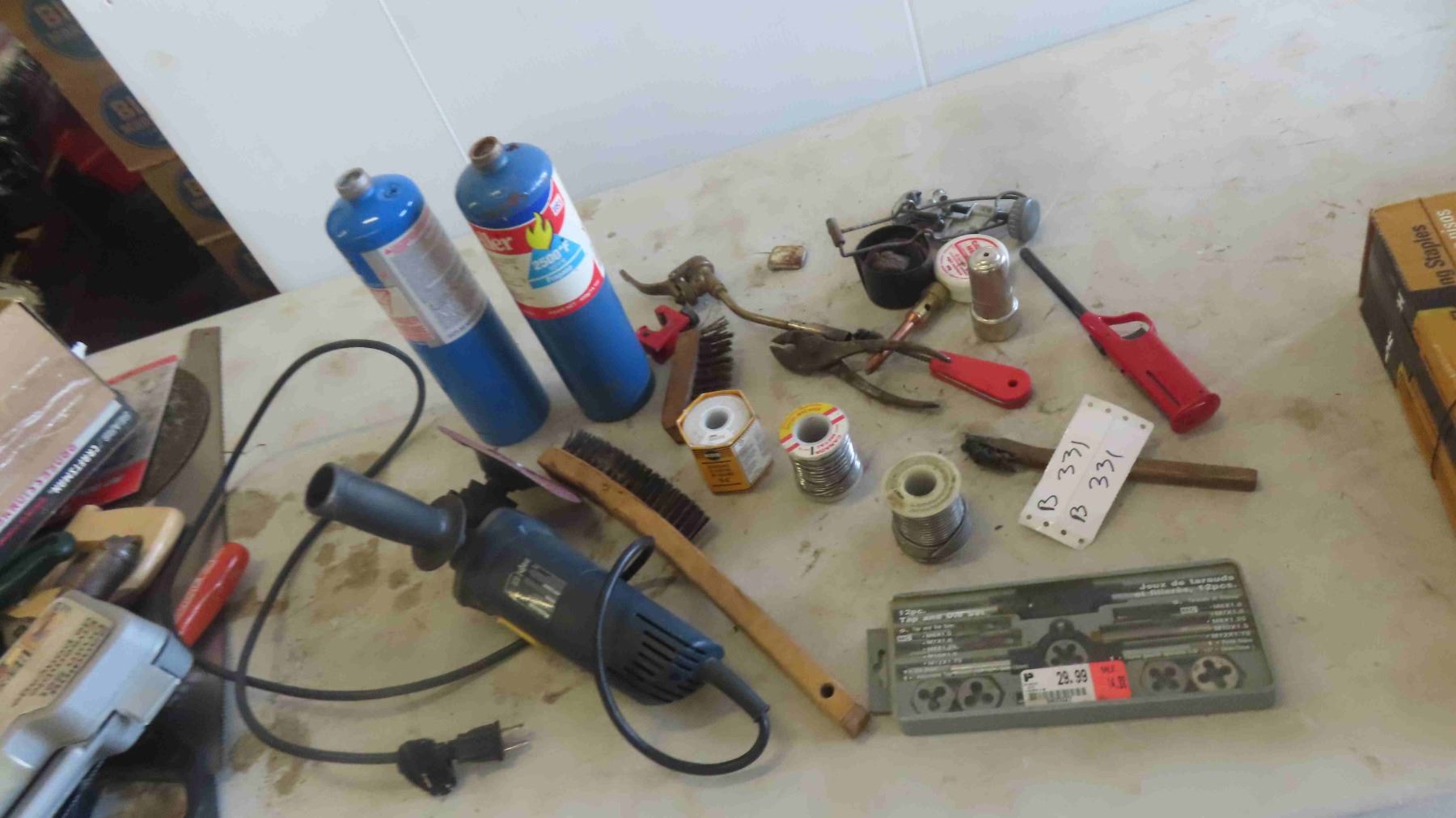 Mastercraft Power Angle Grinder, Tap and Die Set, Pipe Cutters, Wire Brush