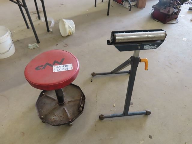 Mastercraft Roller on Stand, Small Rolling Mechanix Stool with Lower Shelf