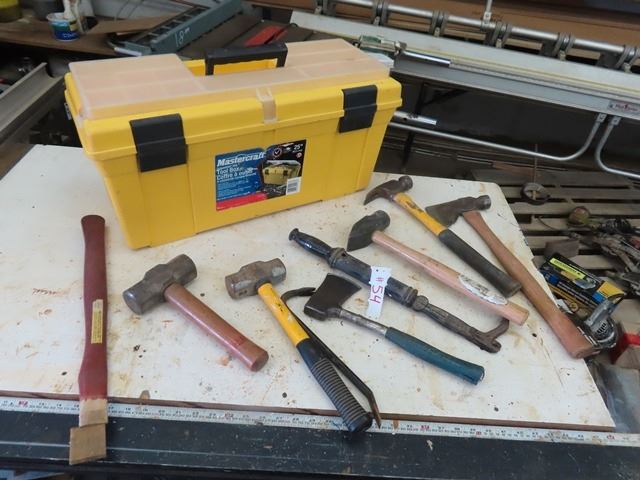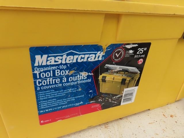 Mastercraft Tool Box 25'' x 10'' x 12'' with Sludge/Claw/Roofing Hammers, Nail Pullers, Hatchet