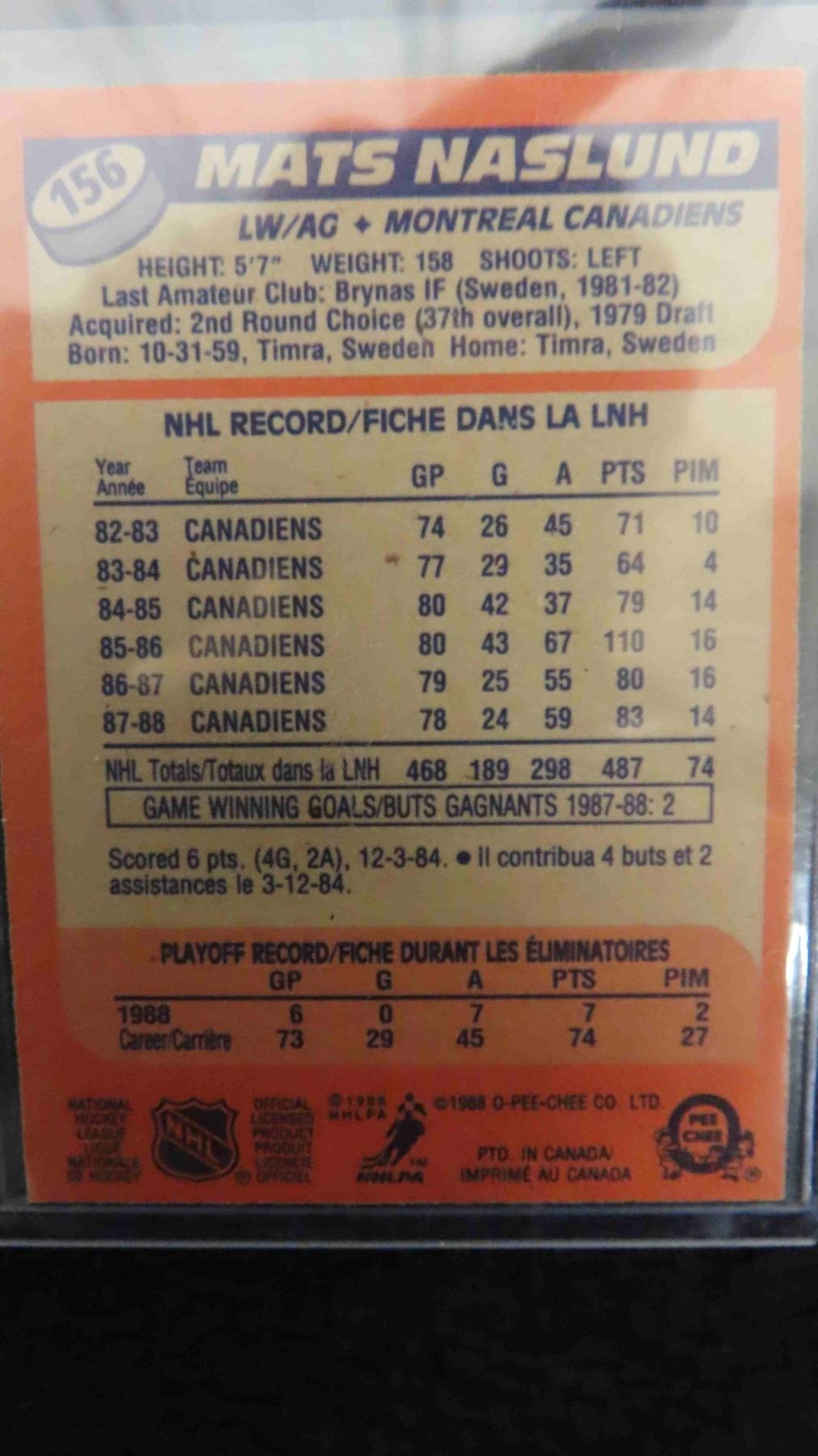 Mats Naslund Montreal Canadians Signed Card