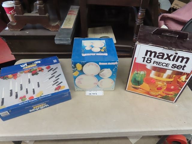 Maxim 18 pc Beverage Set, 20pc Semi Porcelain Dinnerware Set, Wiltshire Lazer Knife Set - All New in Boxes