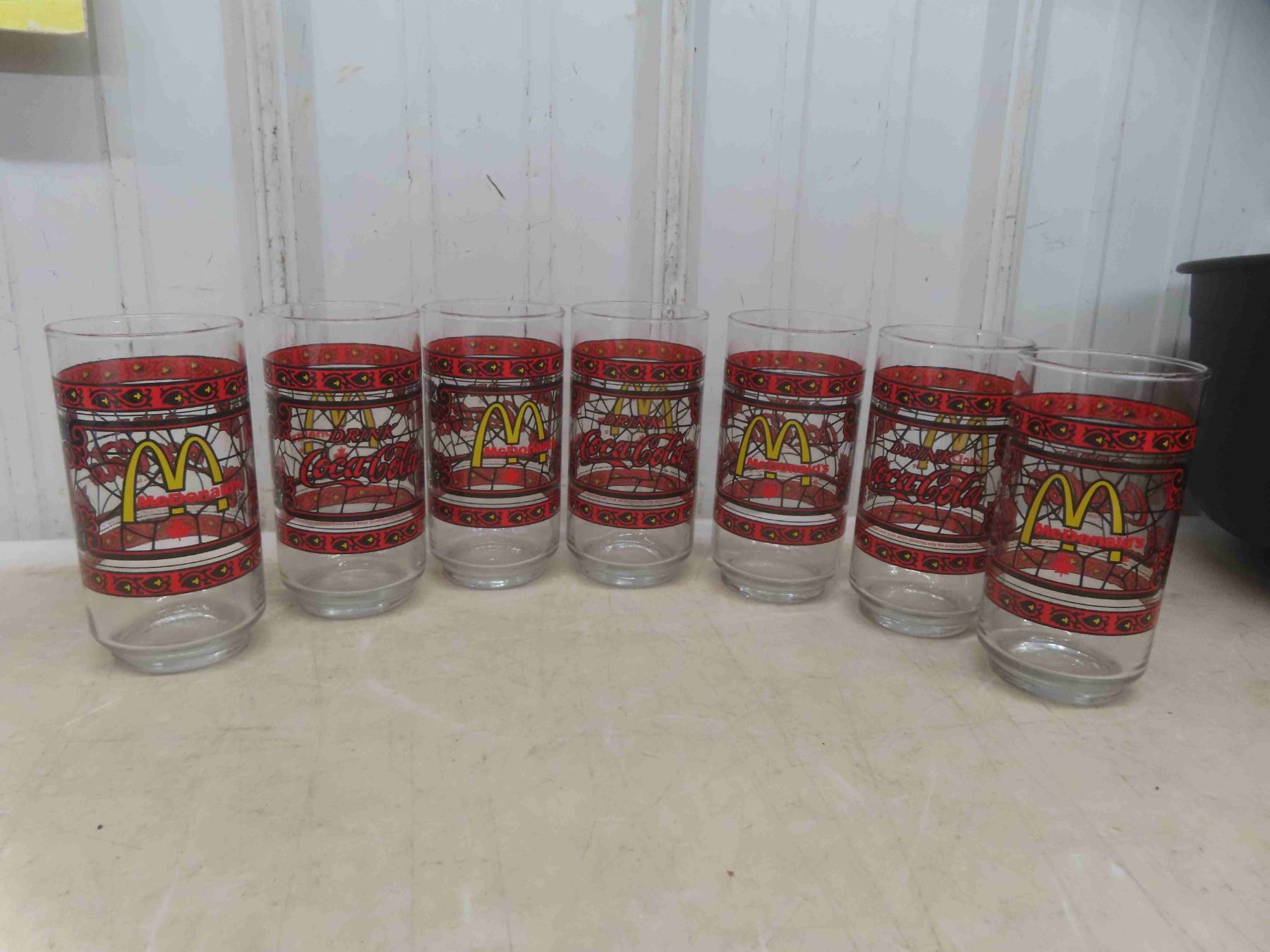 McDonald/Coca Cola Glasses 7, Wicker Basket, Plastic Cauldron
