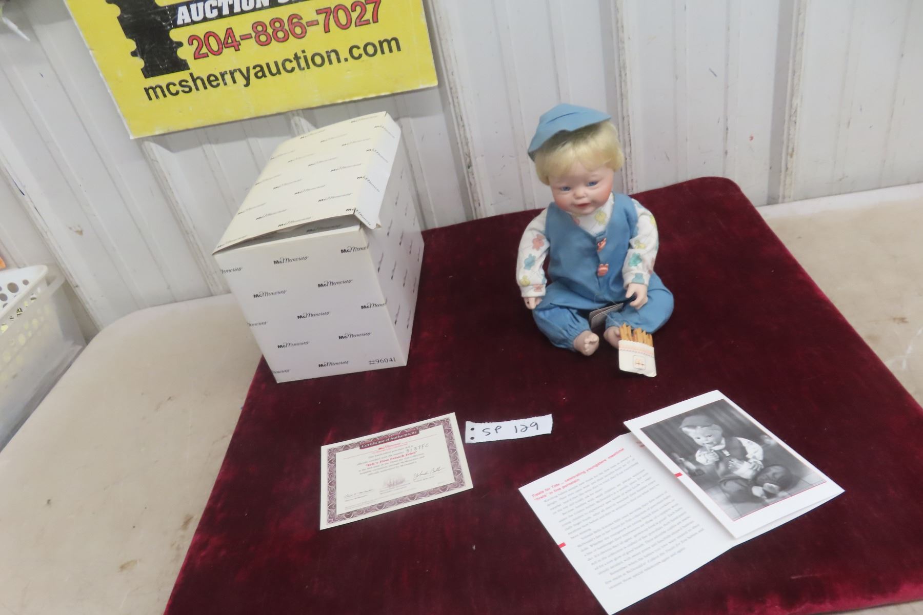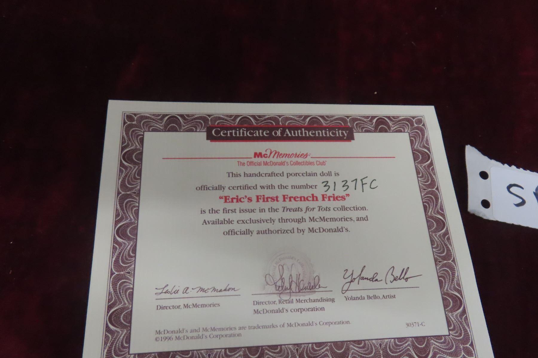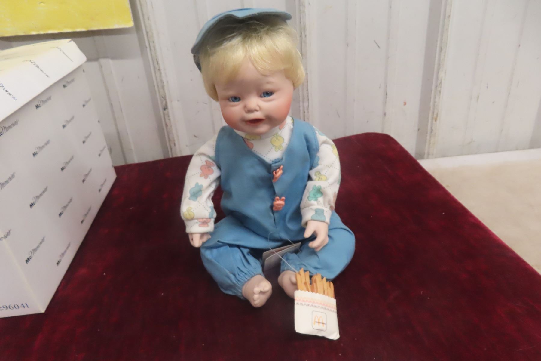 McMemories Porcelain Doll “Eric’s First French Fries,” 12", with Accessories, Certificate, and Box