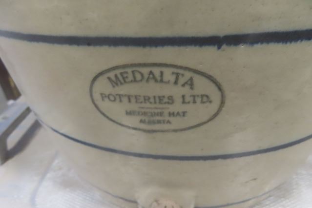 Medalta Approximately 6 Gallon Blue Ringed Water Cooler Without Lid