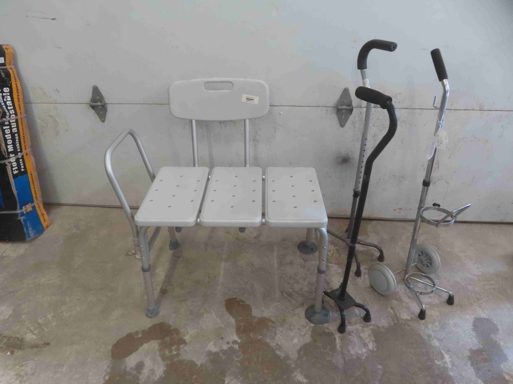 Medical Assist Bath Chair, 2 Adjustable Canes, Tank Cart
