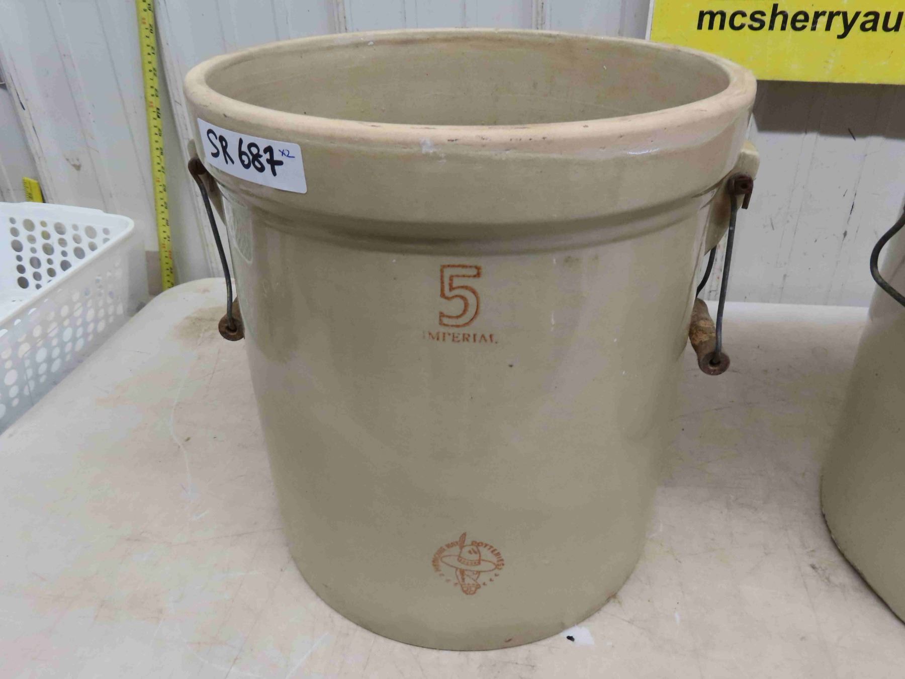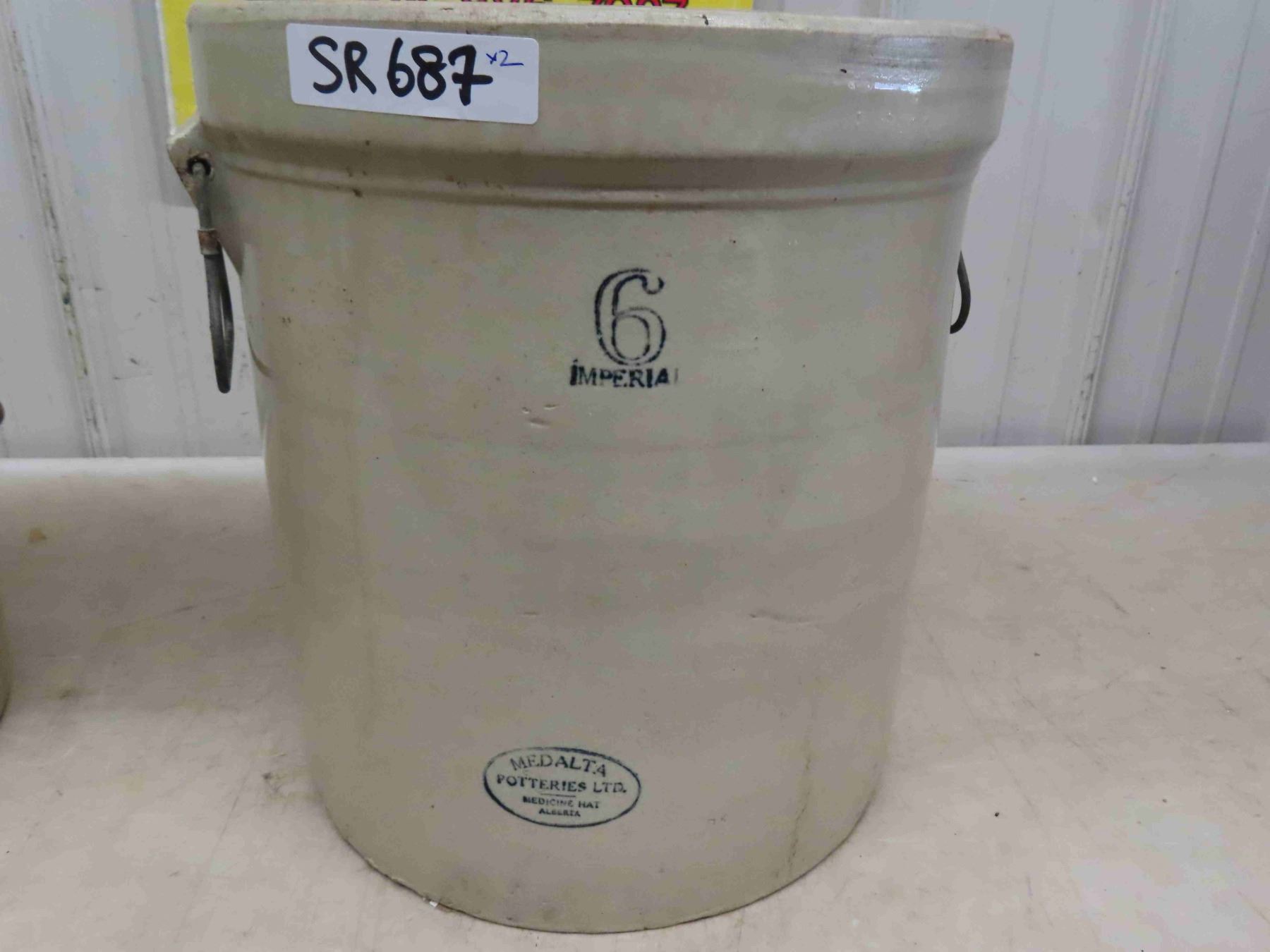 Medicine Hat Potteries 5 Gal Crock with Good Handles, 6 Gal Medalta Crock with