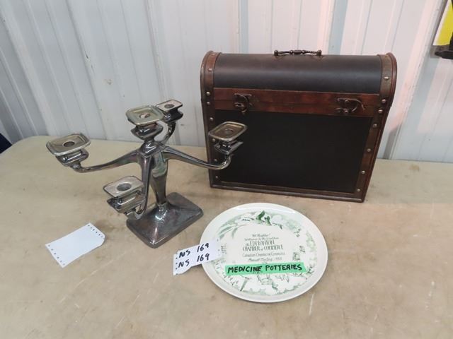Medicine Hat Pottery Plate, Candle Holder, & Wine Carrier