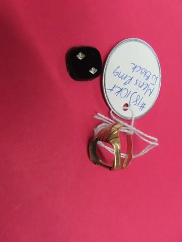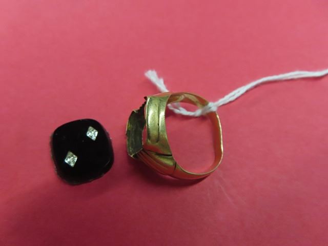 Men's 10 KT Ring w Black Stone & Diamond Chips Insert???- Needs Repair- Size 11, Approx 4.25 Grams