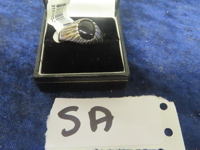 Mens Size 13 Sterling Silver Ring w Black Stone