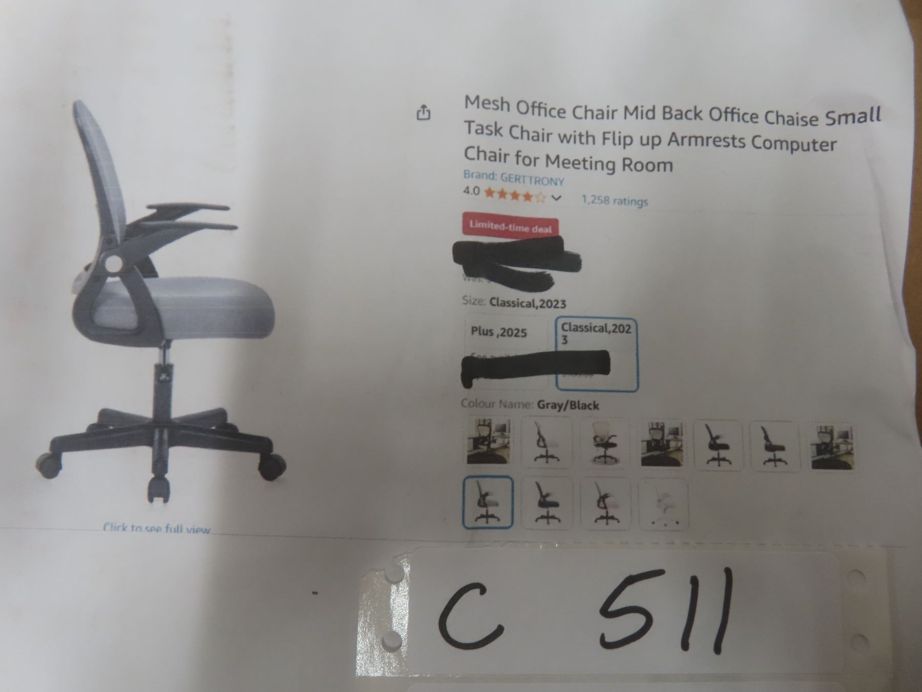 Mesh Office Chair Mid Back Office Chaise Small Task Chair with Flip up Armrests Computer Chair for Meeting Room Grey Black