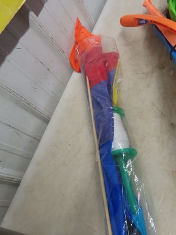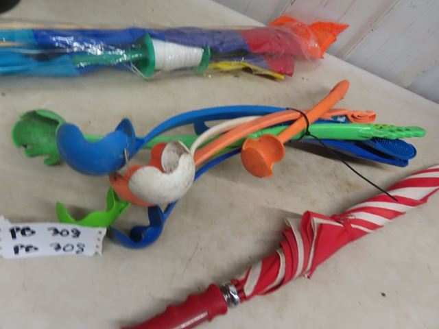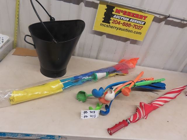 Metal 14" Fire Bucket, New Kite, 7 Dog Ball Toss Scoops, Umbrella