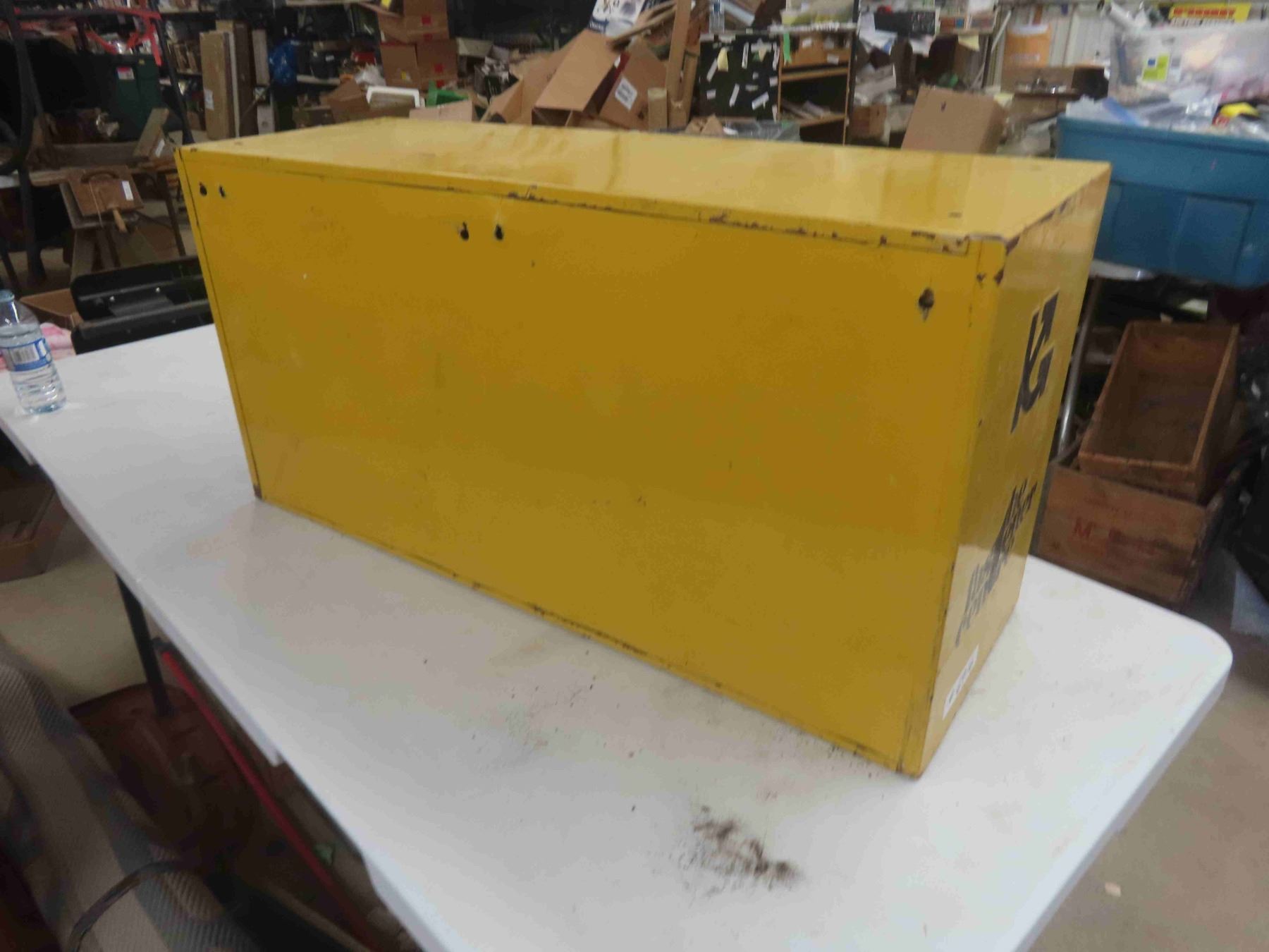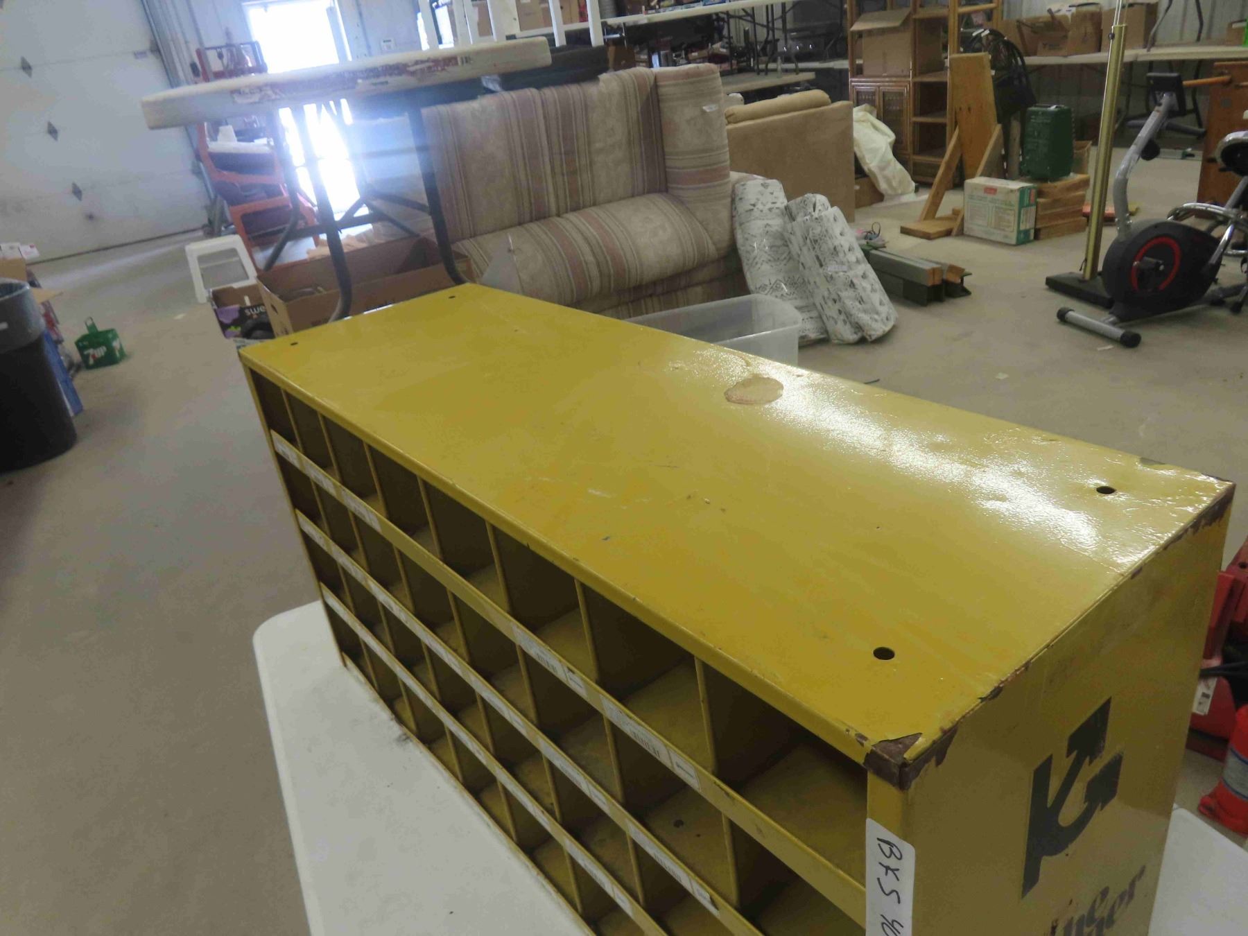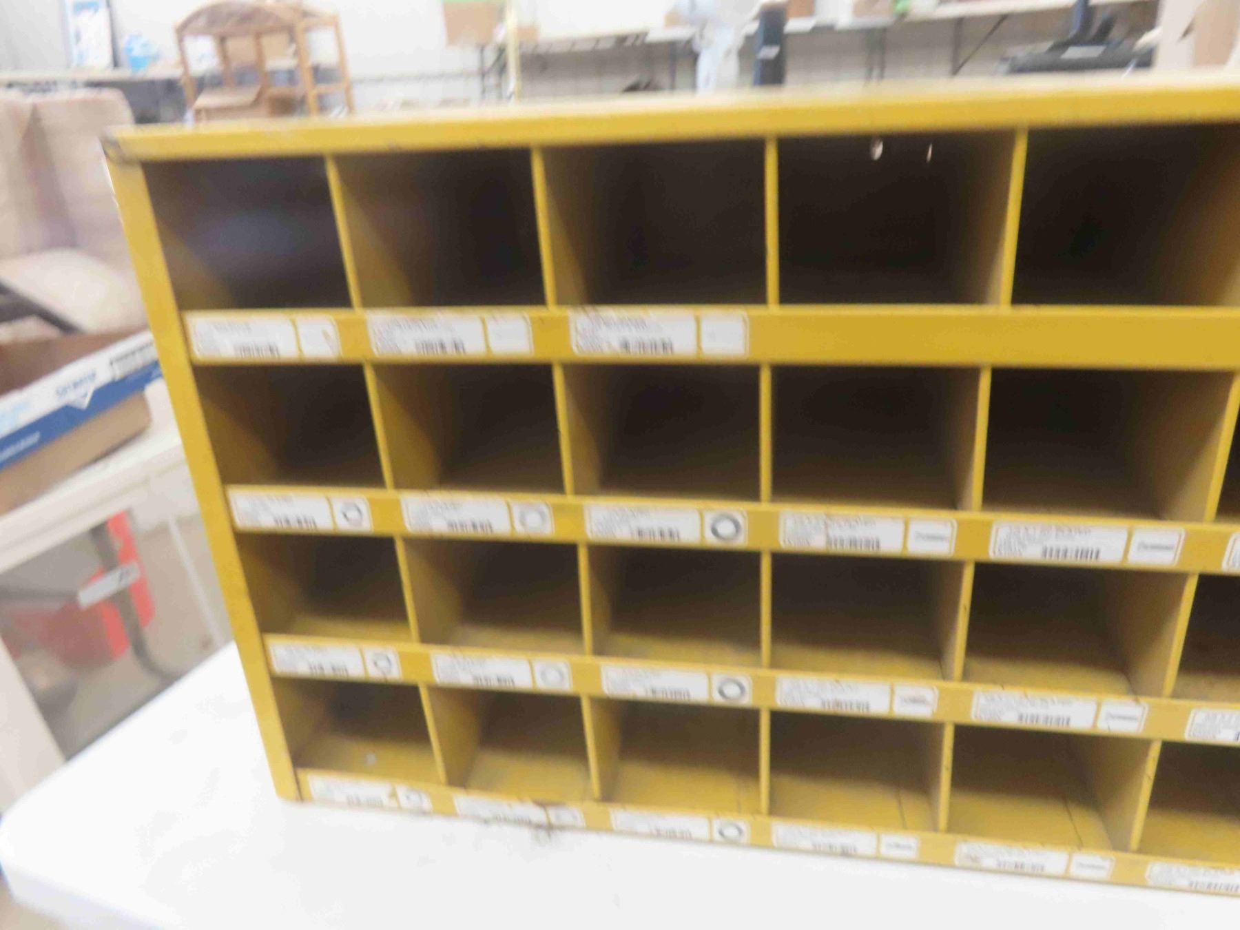 Metal 24-Pigeon Bolt Bin with Advertising. 17 1/2'' x 35'' x 12''