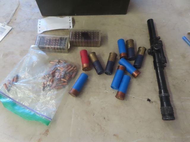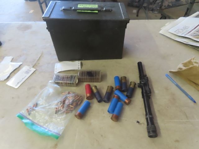 Metal Ammo Crate , 22 Cal Ammo -125 plus Rounds, 12 Gauge Ammo, 10 Rounds & Safari 4x15 Scope - MUST PROVIDE PROOF OF PAL PRIOR TO PURCHASE - WE DO NOT SHIP AMMO BUYER MUST PICK UP OR MAKE THEIR OWN DELIVERY ARRANGEMENTS