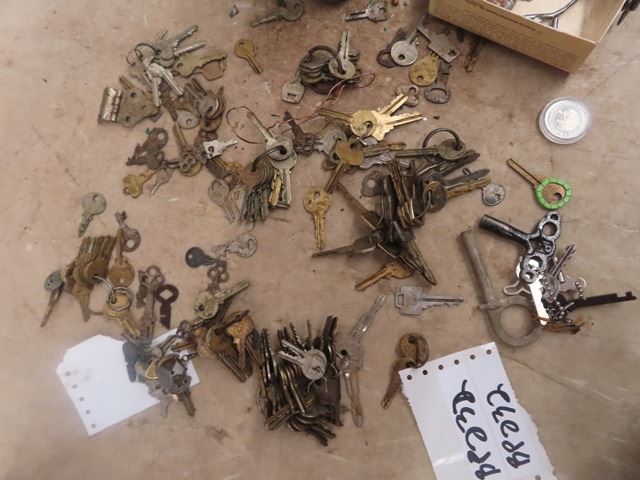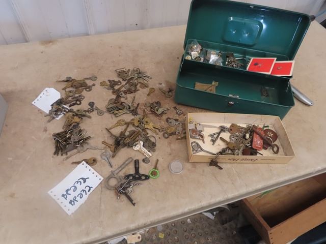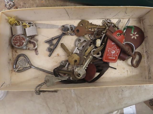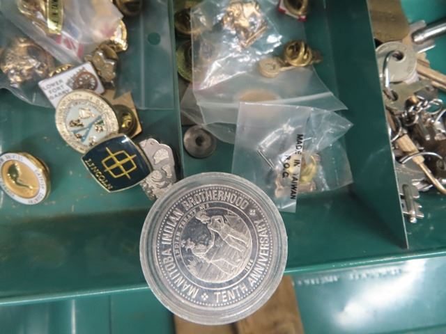 Metal Box w Keys, Pins, Red River Indian Dollar