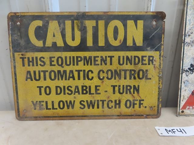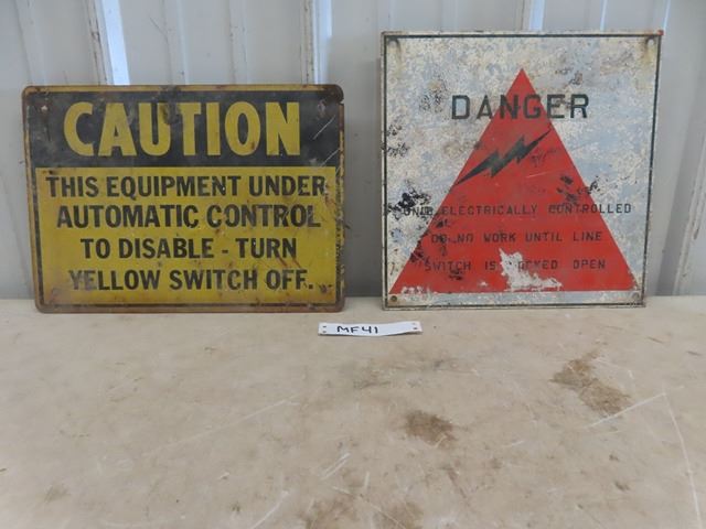 Metal Caution Sign 10" x 14" & Metal Danger - Electrically Controlled Sign 12" x 12"