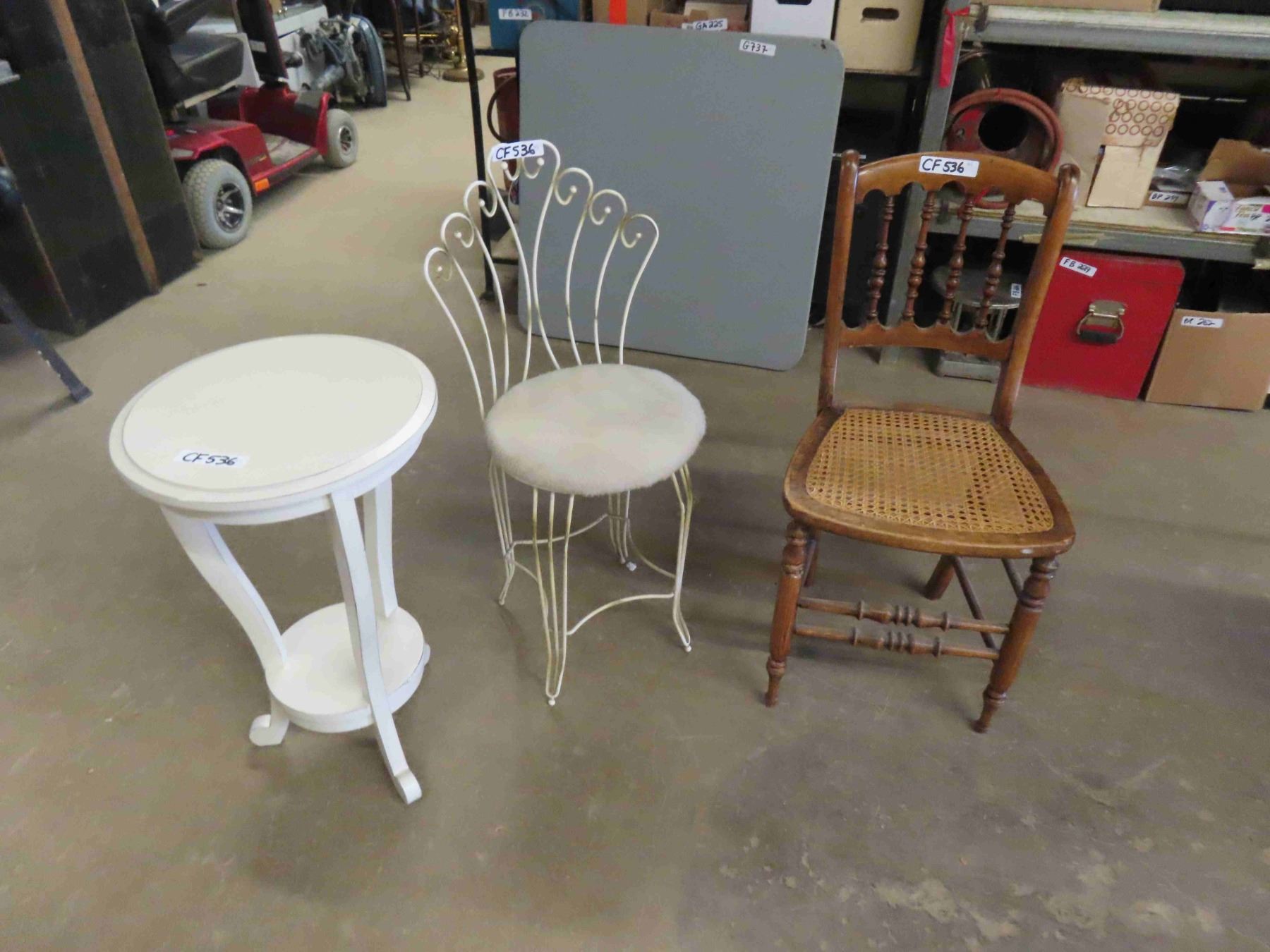 Metal Chair with Cushioned Seat, Cane Seat Wood Chair, Small Table/ Plant Stand 16" x 26"