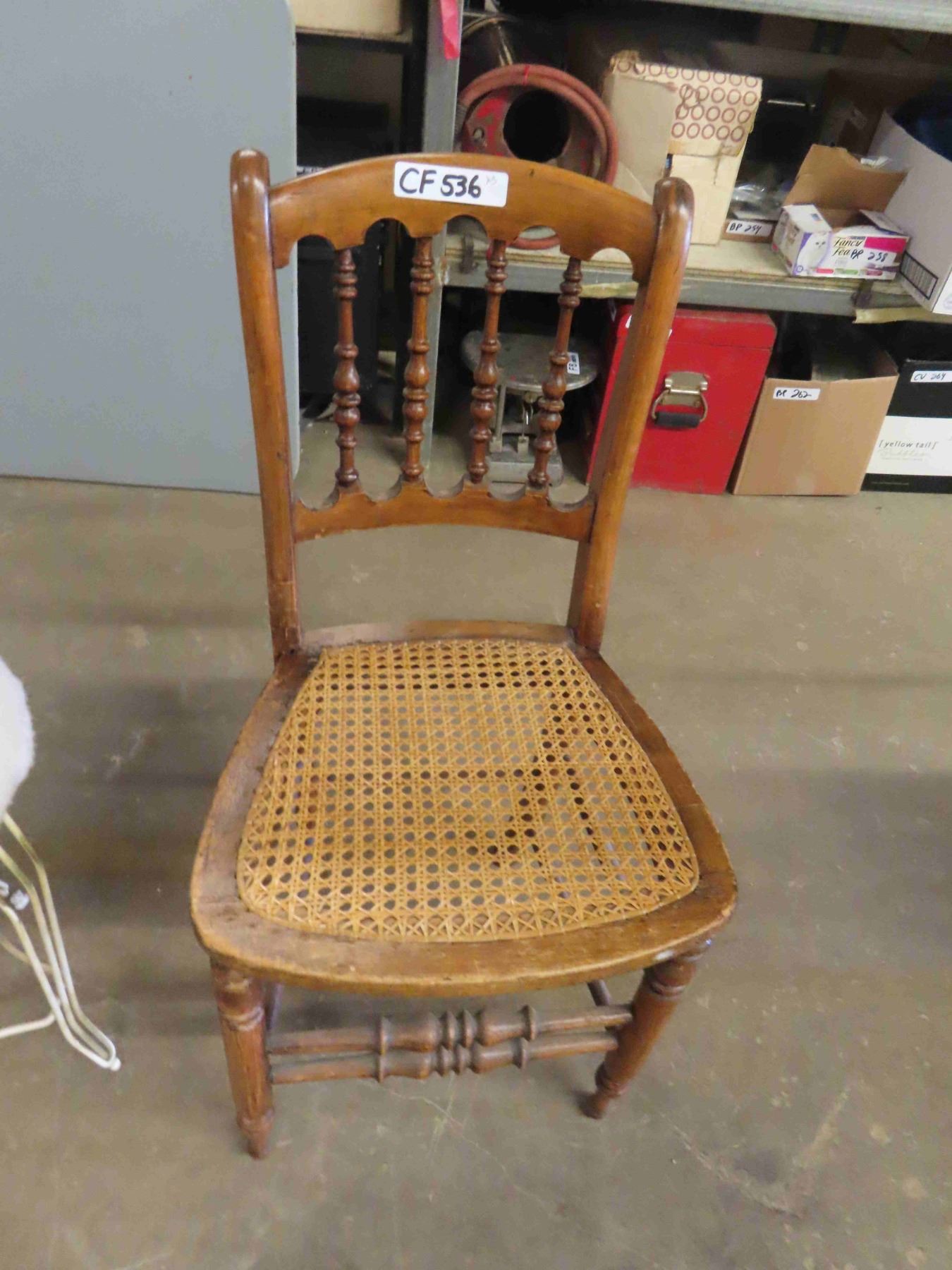 Metal Chair with Cushioned Seat, Cane Seat Wood Chair, Small Table/ Plant