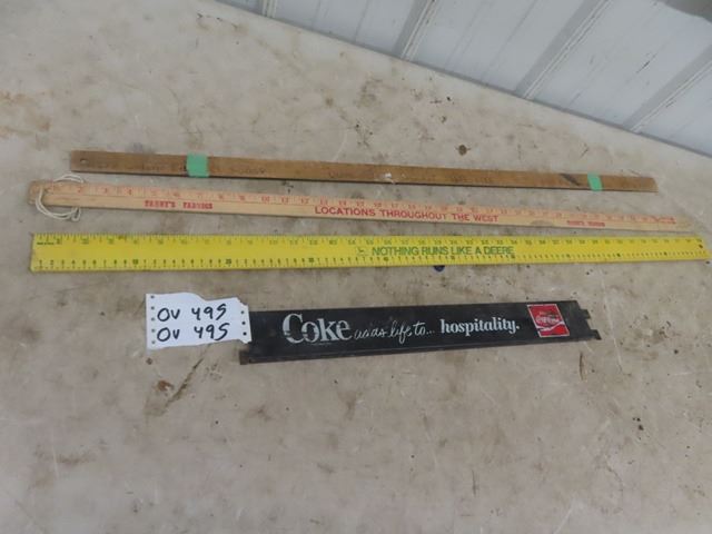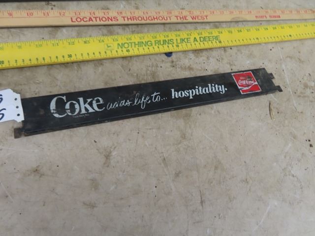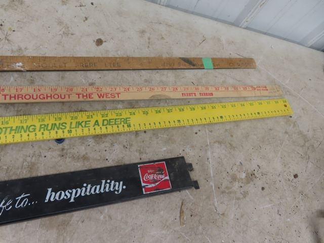 Metal Coke Rack Sign, 3 Yard Sticks 1) John Deere