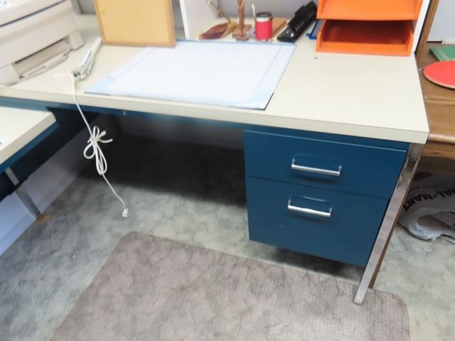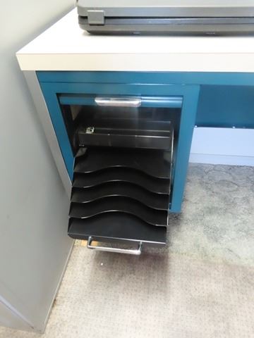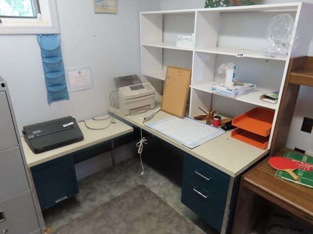 Metal Desk with Side Arm and Open Hutch