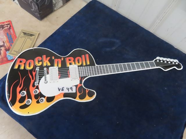 Metal Elec Guitar Sign 28" L Up to 11" W