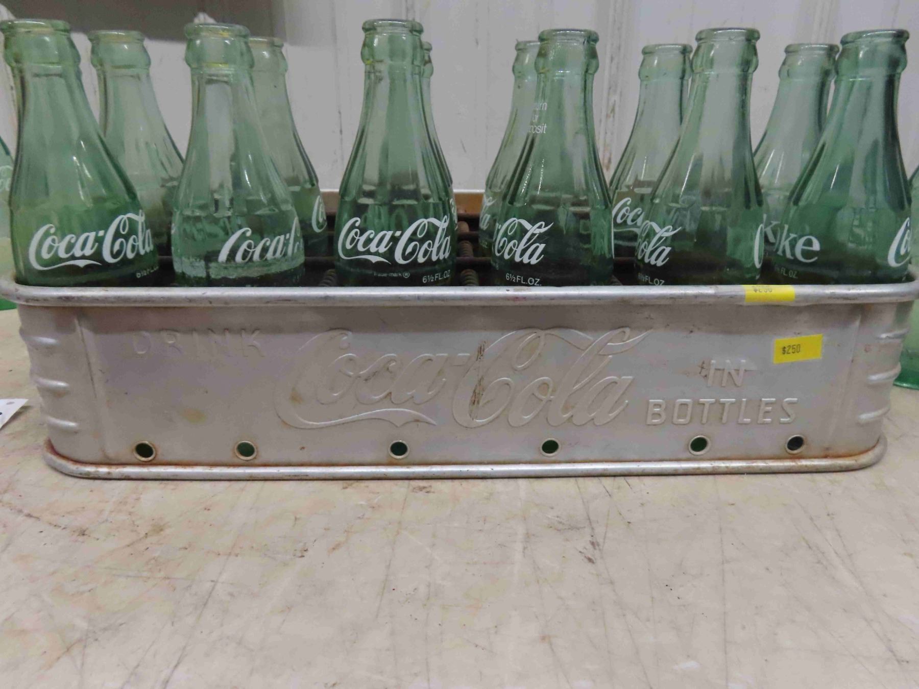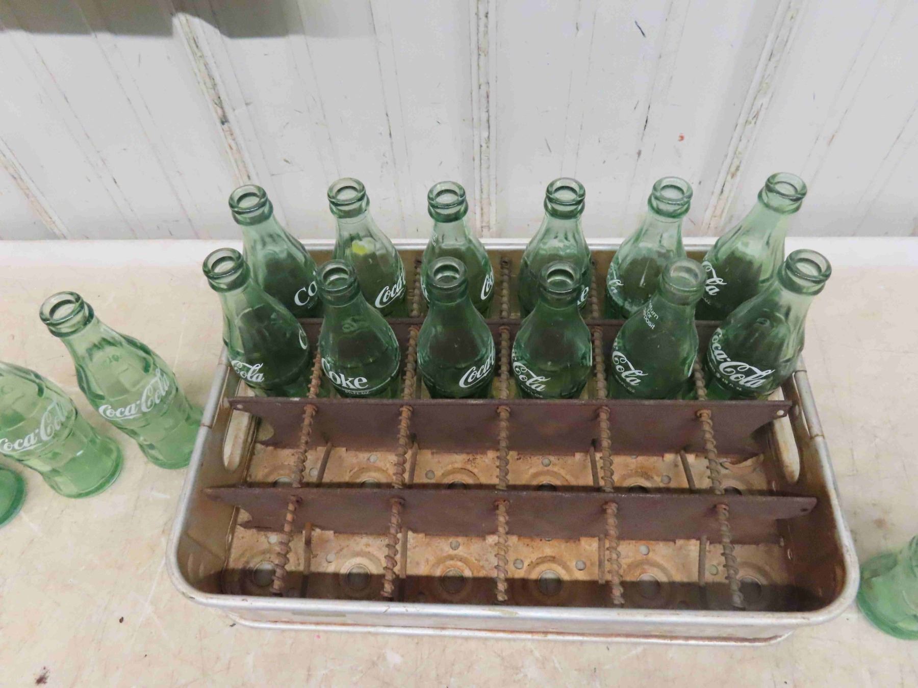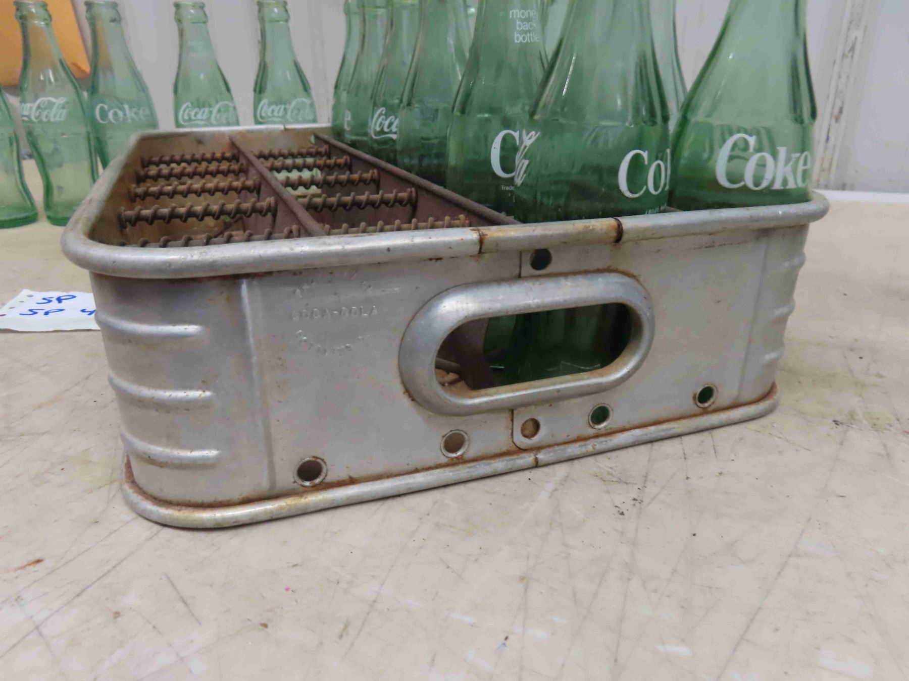 Metal Embossed 24 Coke Bottle Carrier Complete with 24 Coke Bottles