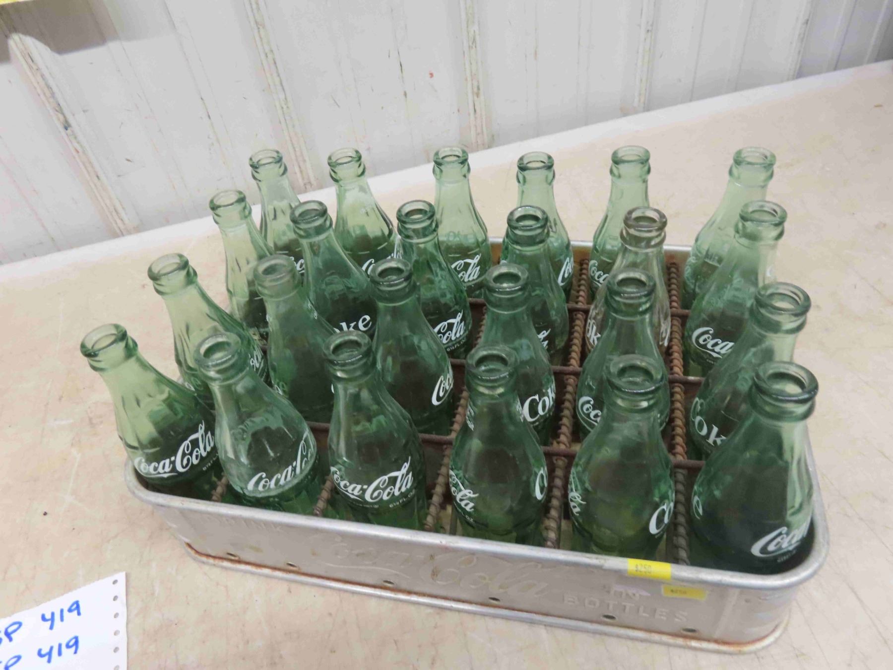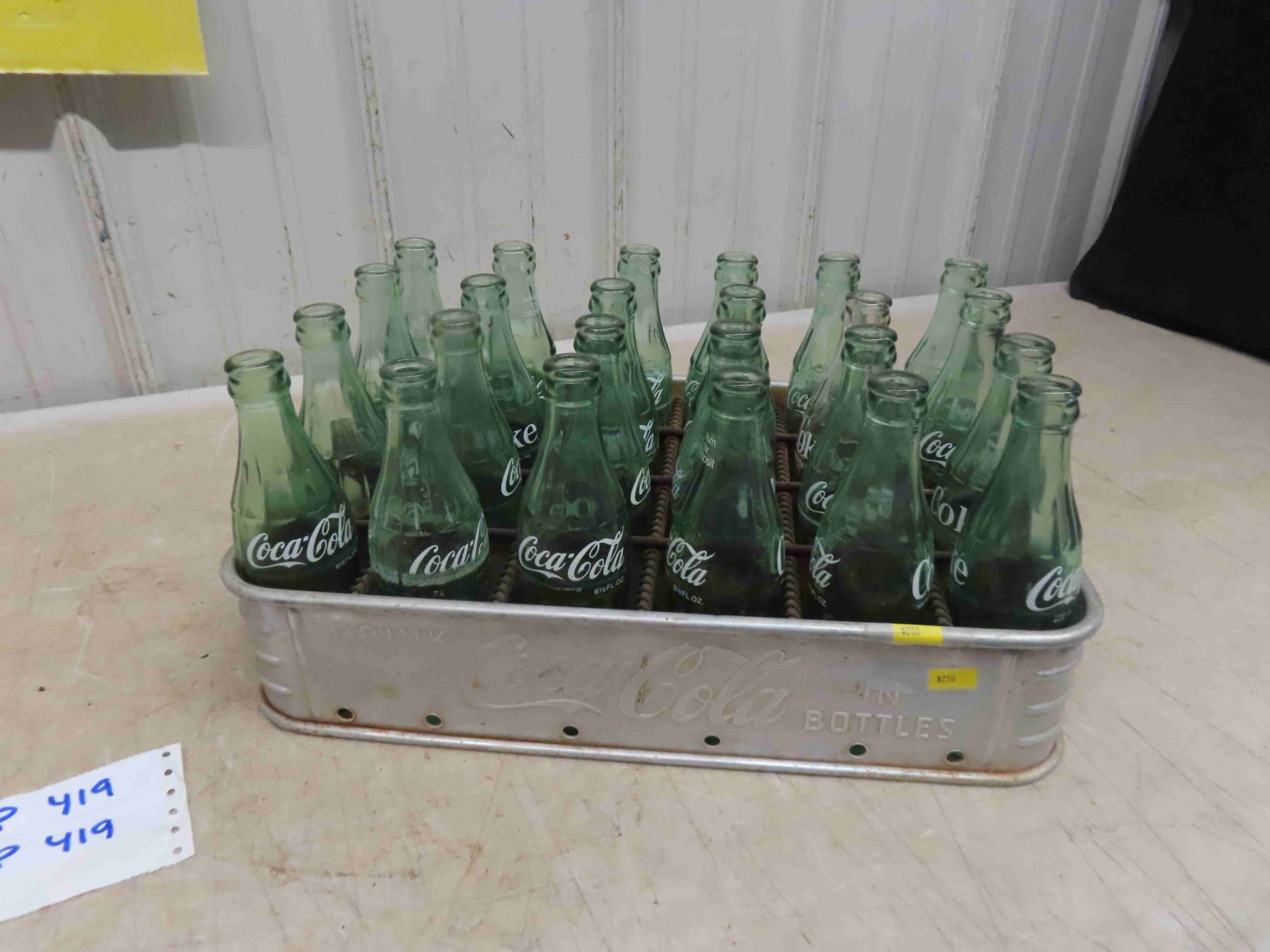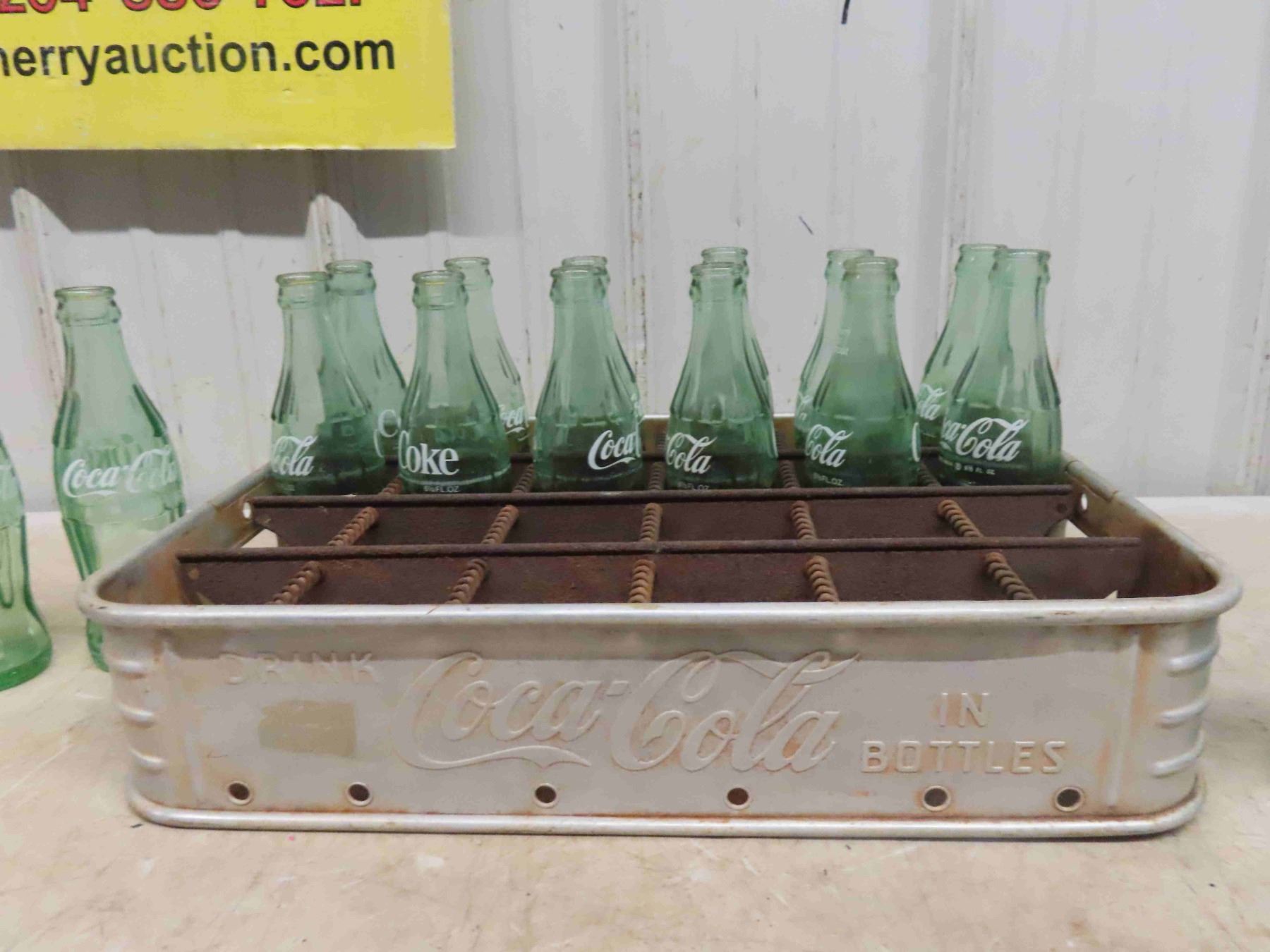 Metal Embossed 24 Coke Bottle Carrier Complete with 24 Coke Bottles