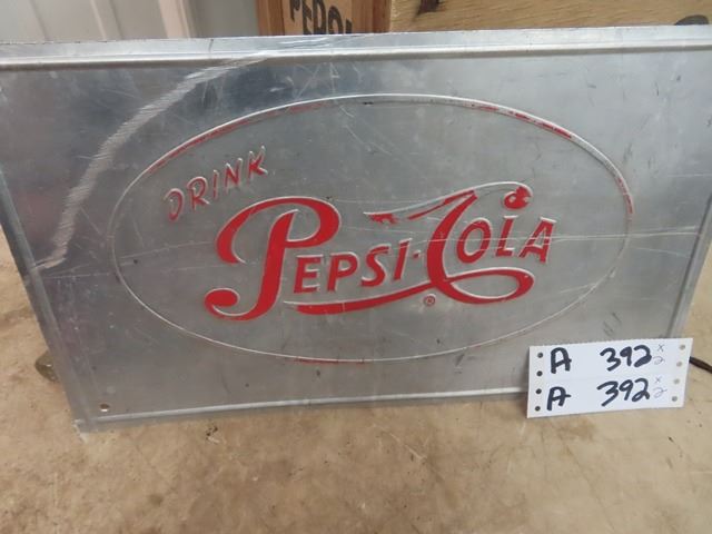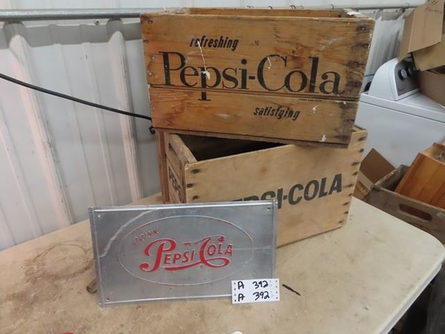 Metal Embossed Pepsi SIgn 9" x 16", & 2 Pepsi Crates